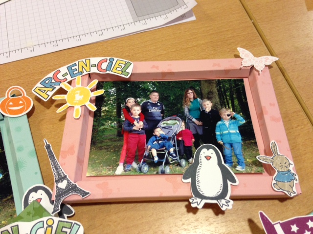 Avant la soirée, les parents ce sont réunis pendant ce temp avec Stephanie nous avons fait 1 atelier scrap pour leurs jolies petites têtes blondes