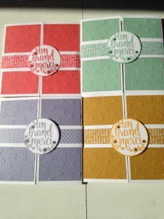 Le set de tampons « Quelle beauté »est juste magnifique, c’est 1 set hôtesse qui était tout à fait adapté pour l’occasion. Vous pouvez le commander uniquement si vous organisez 1 atelier Stampin up chez vous (faites moi signe!!!)