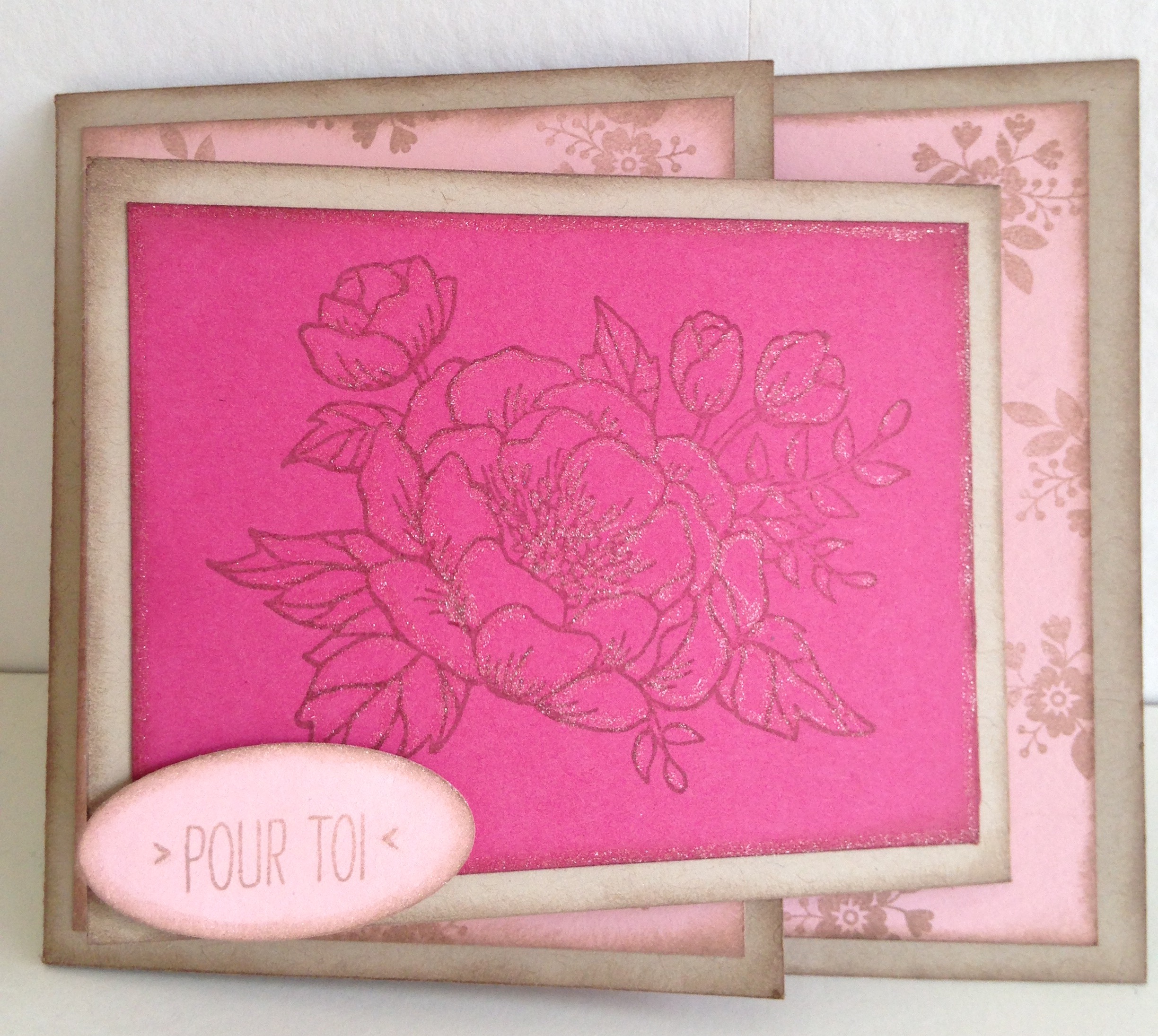 J’ai une nouvelle fois sorti mon set de tampons »Essence de rose » et mon stylo paillettes « Wink of Stella »