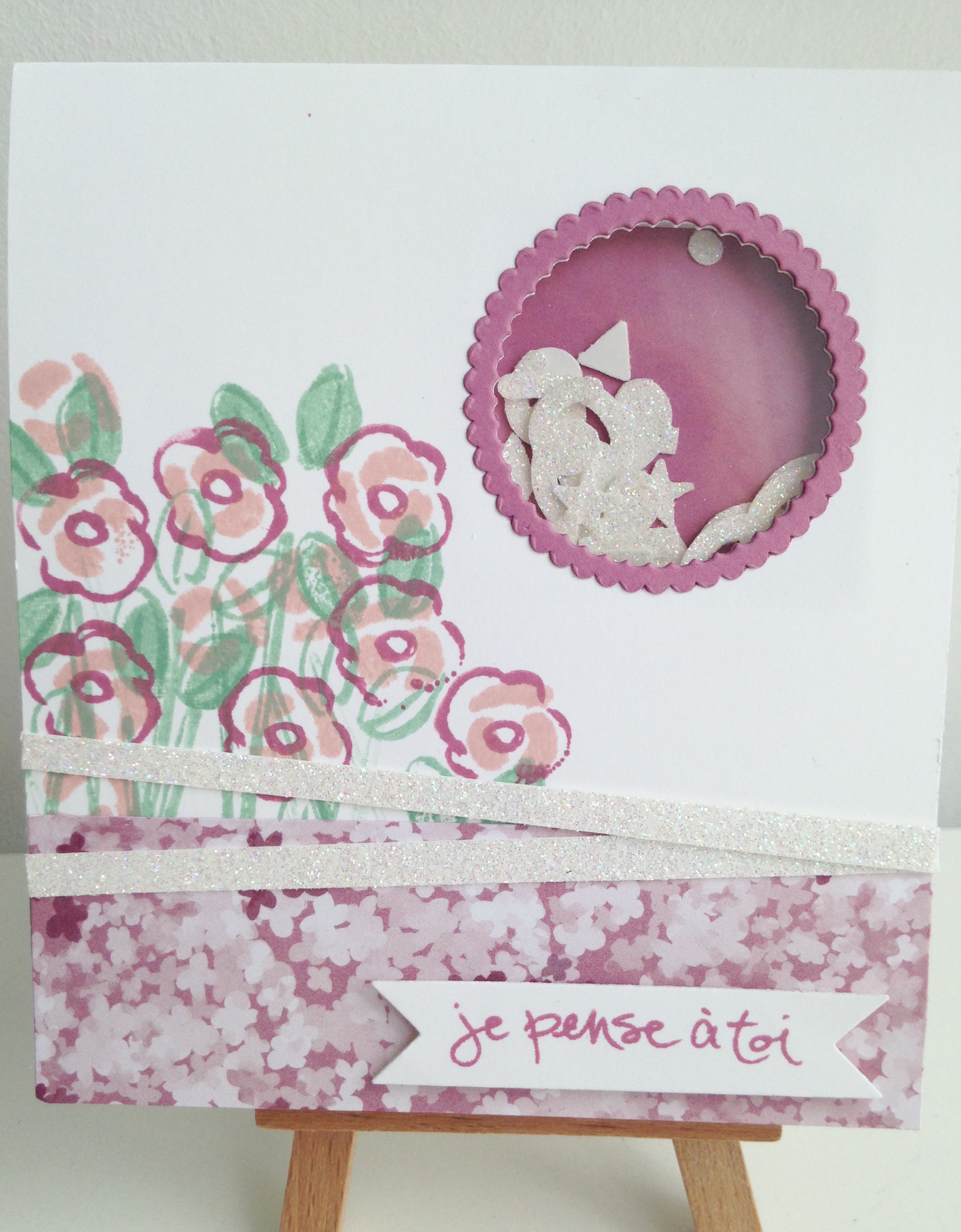 Et la deuxième est sur le même principe mais sans le coté « shaker » juste avec la plus petite fleur du set de tampon « Amour et affection »