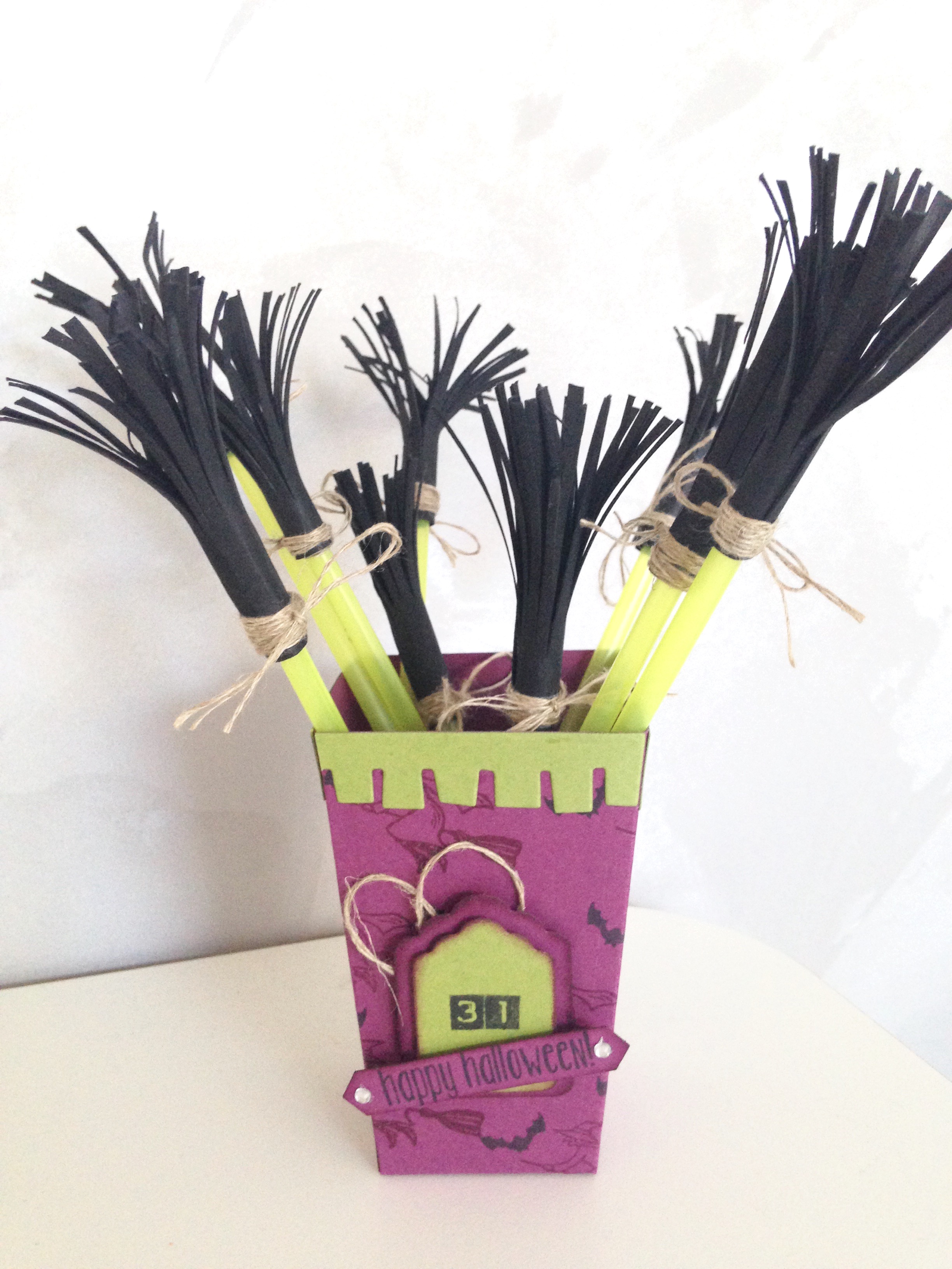 Et là pour, j’ai fais une multitude de balais avec des pailles, des chutes de papier noir et un peu de fil de lin.