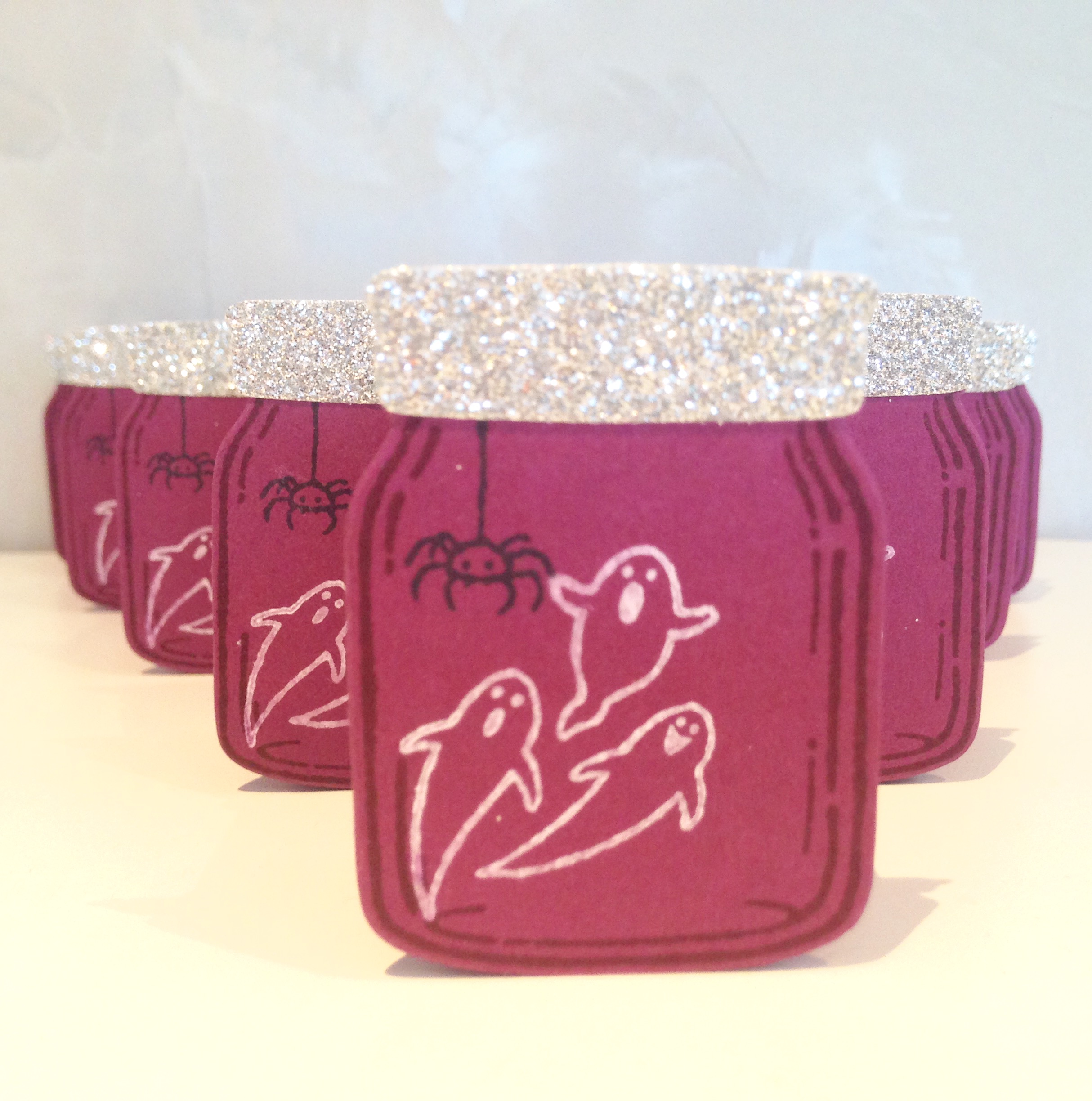Je n’ai pas pu m’empêcher encore une fois de travailler sur le thème Halloween. Les framelits « Bocaux en tous genres » étaient tout à fait adapté pour m’aider à faire des contenants. Je vous montre plus en détails