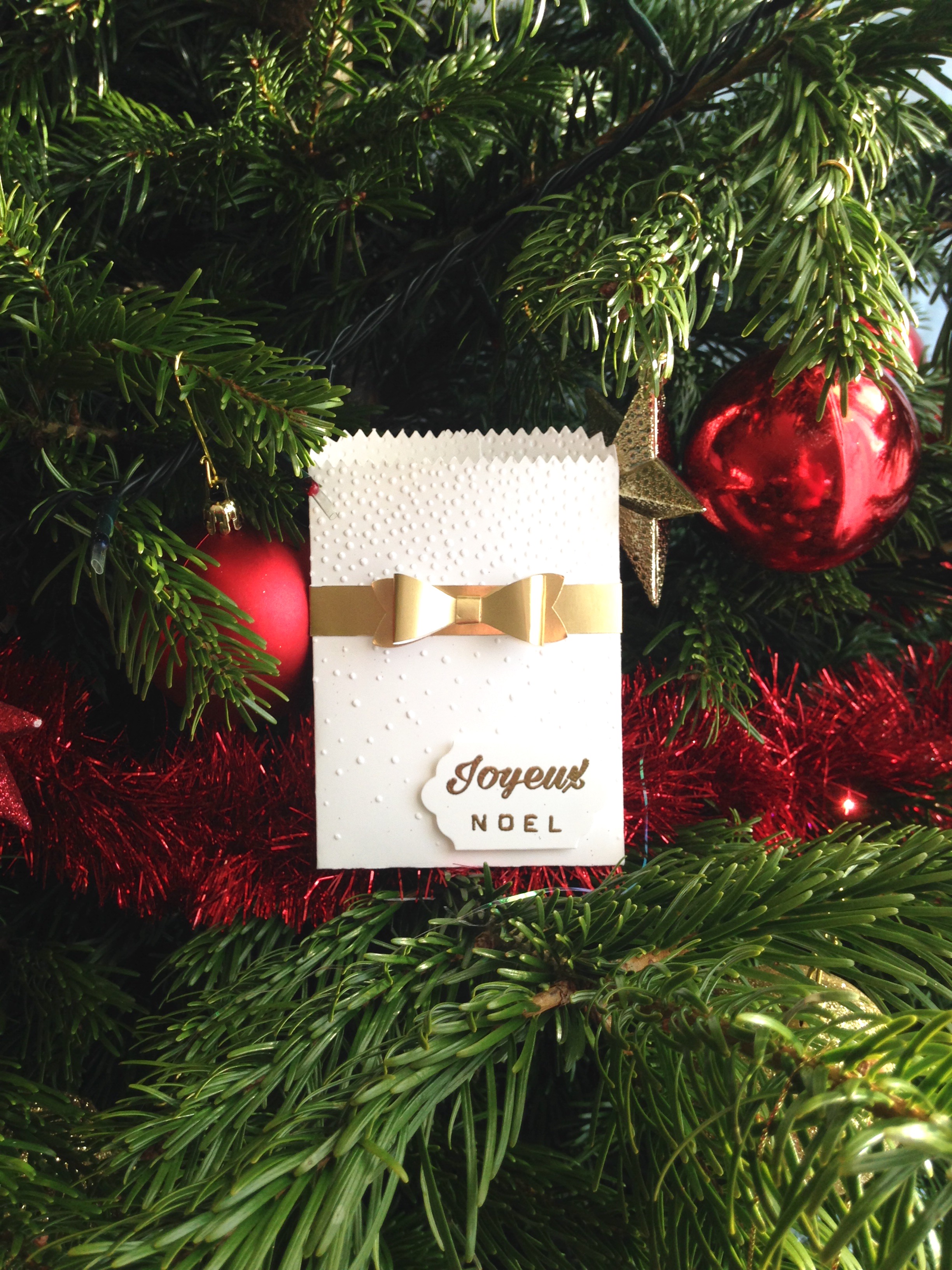 Du coup, je lui ai fais une belle pochette à cette carte cadeau. Avec de l’embossage à chaud Or