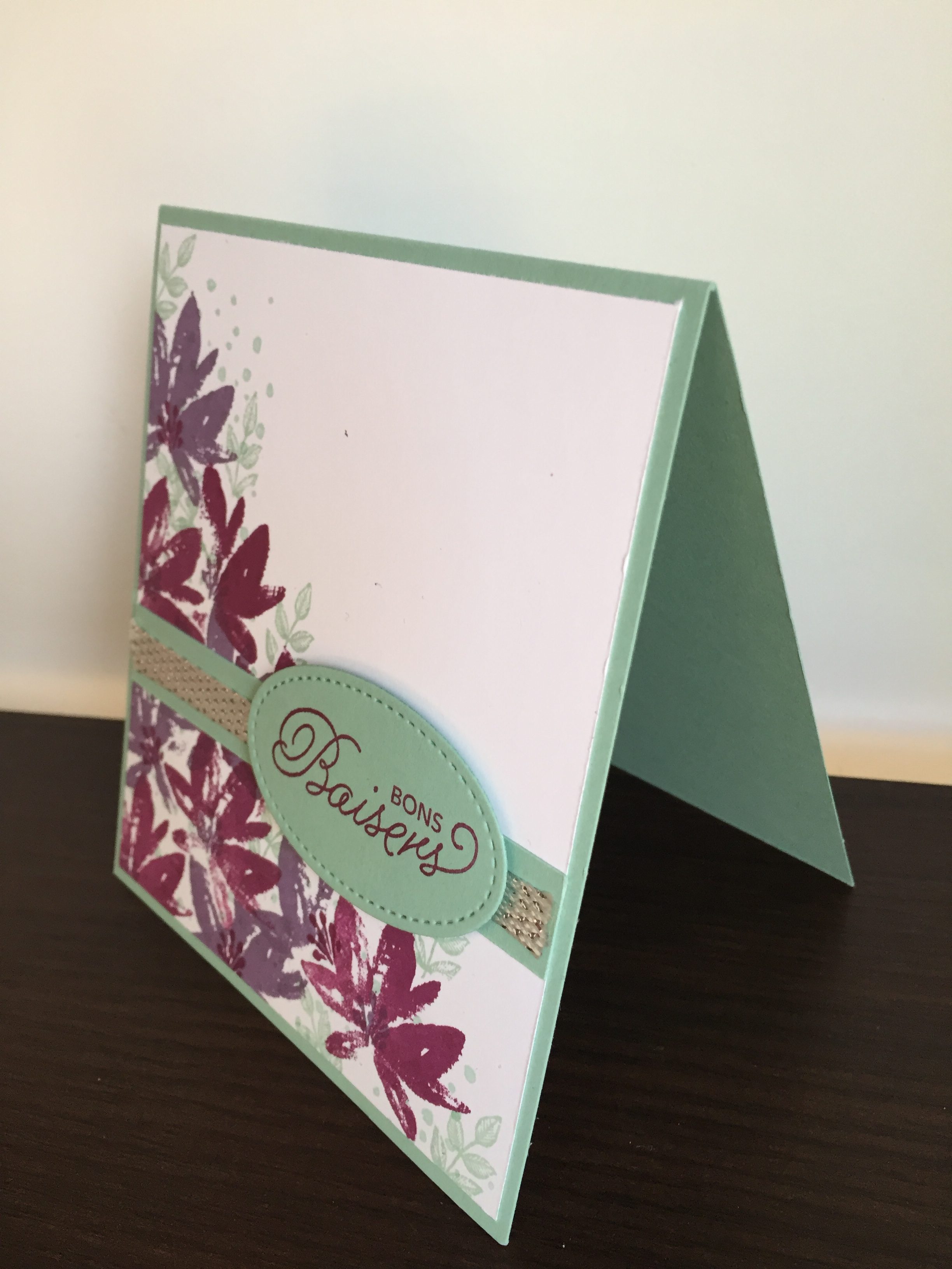 Là, j’ai utilisé le super set de la Sale-A-Bration « Jard’incroyable » ainsi que le ruban métallisé que j’adore