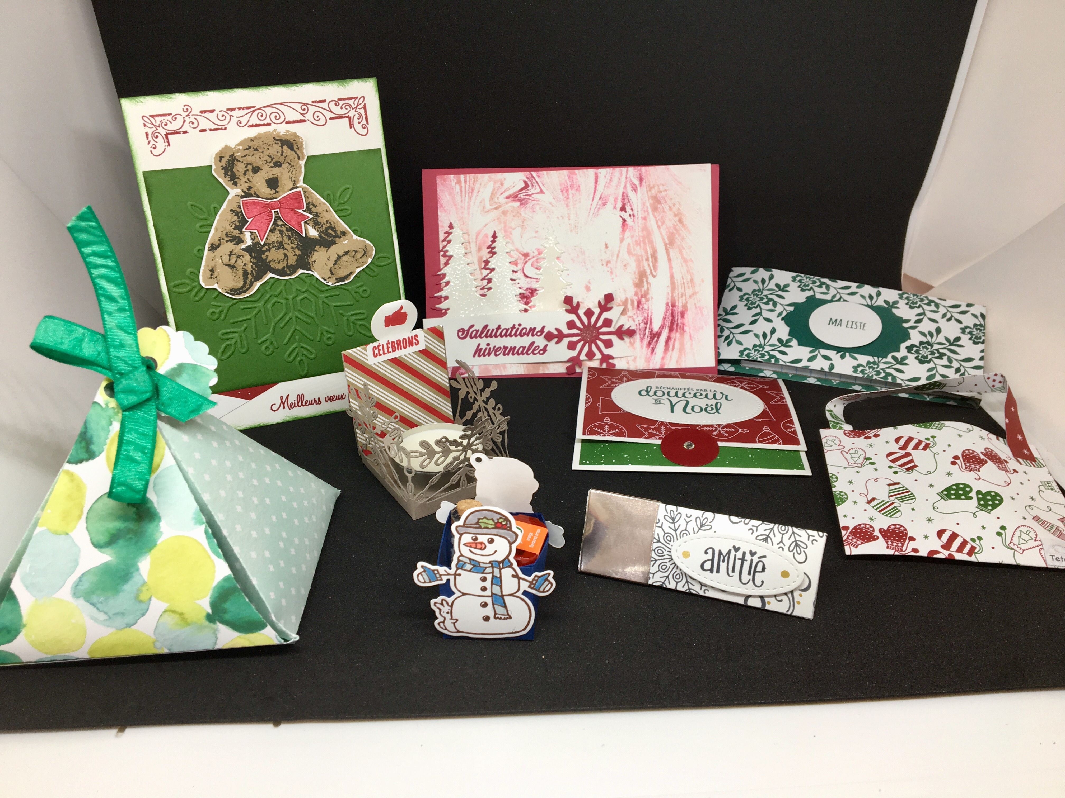 Une dernière photo pour vous montrer la diversité de ce que j’ai pu collecté. Je ne peux pas cier tout le monde sinon mon article ferait 3 pages mais je suis ravie d’avoir pu papoter avec des nouvelles personnes et échanger avec celle que je connaissais déjà. Vive la magie STAMPIN UP