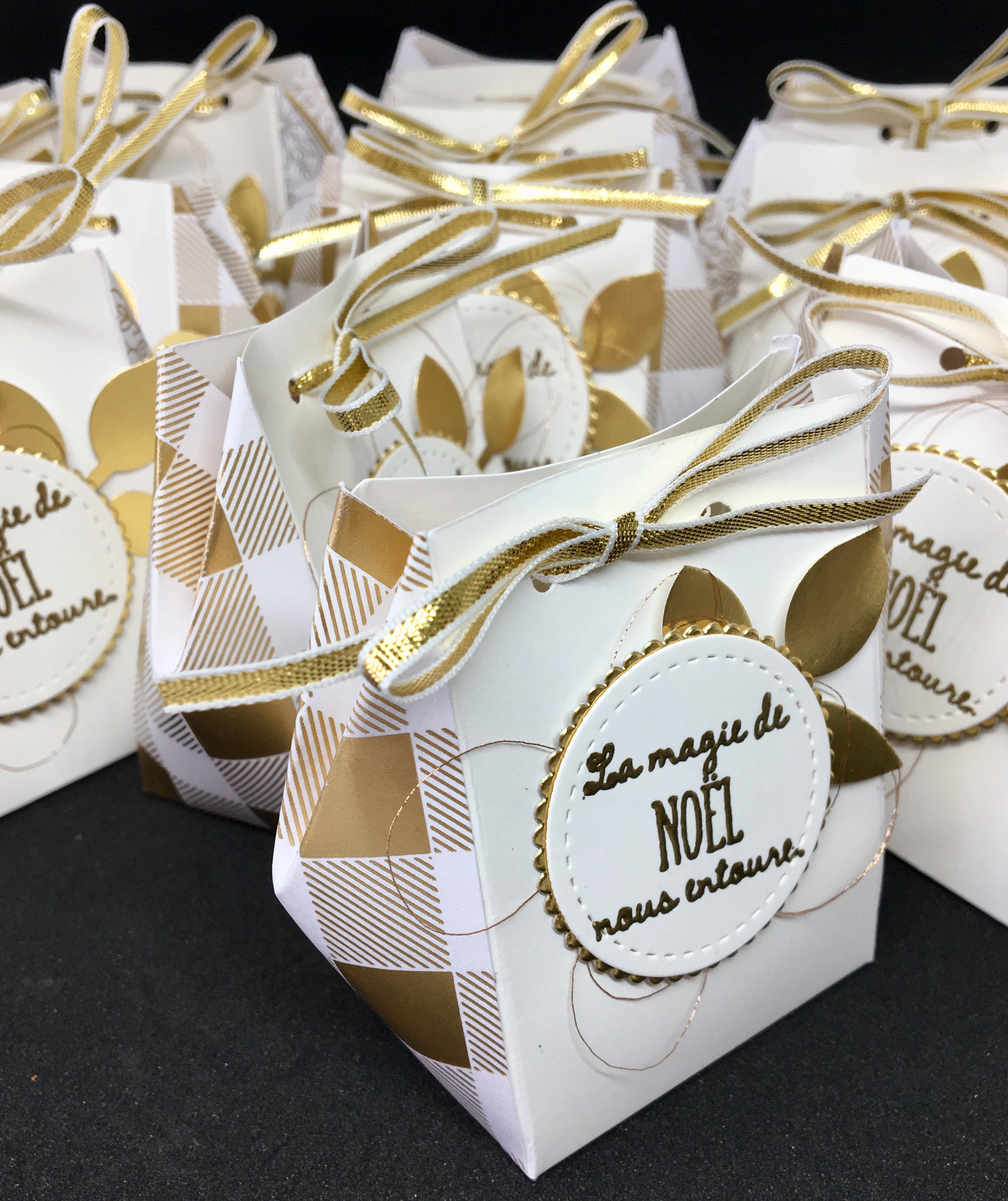 J’avoue que je me suis fais plaisir avec des produits que j’aime beaucoup. Notamment l’embossage à chaud Gold hihiii et cette magnifique série de papier « les joies de l’hiver » P 37 du catalogue hiver