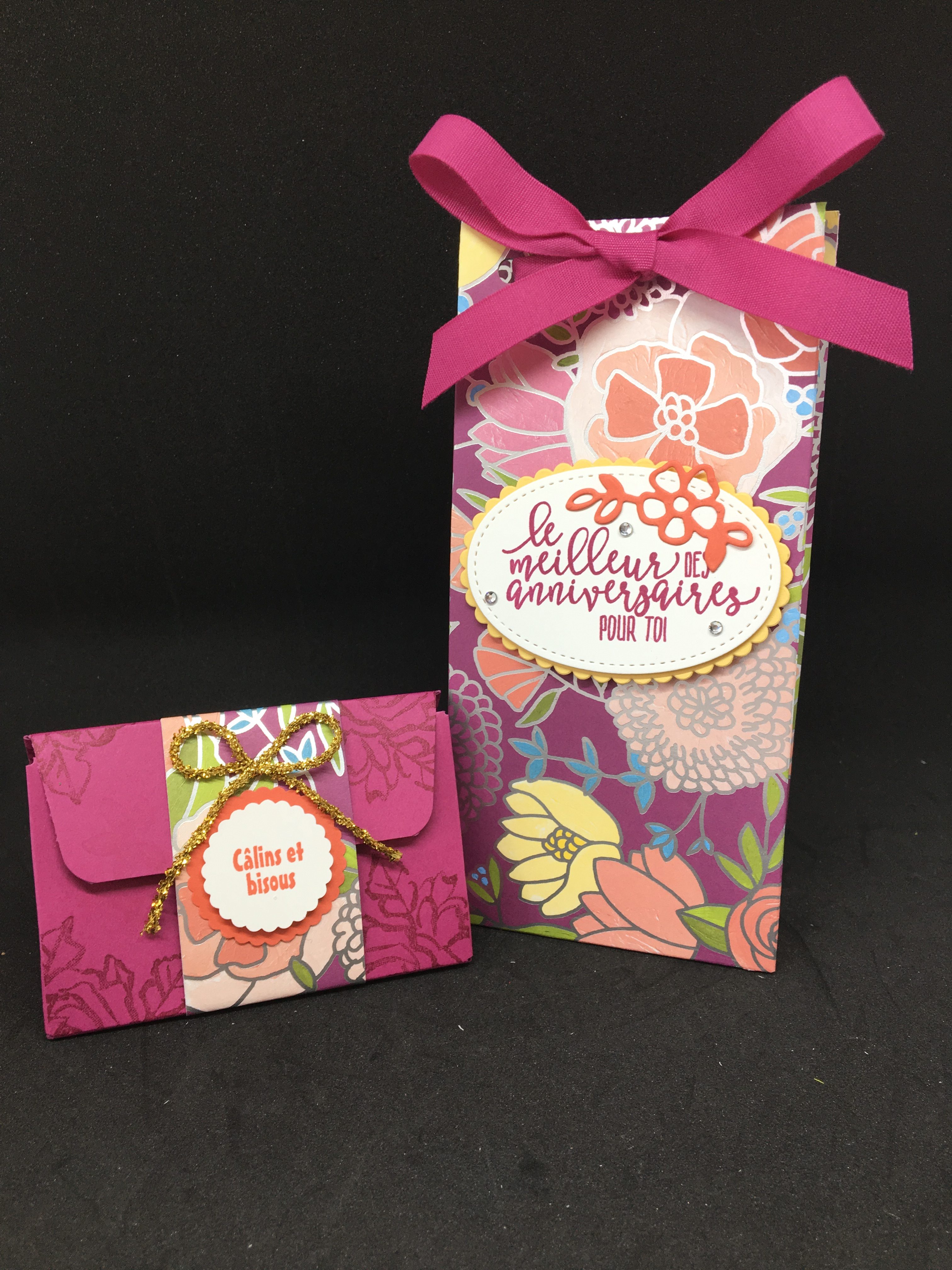 Je vous montre les projets que nous avons réalisé lors d’un atelier Stampin Up. Le sujet était l’Insta-Pochette