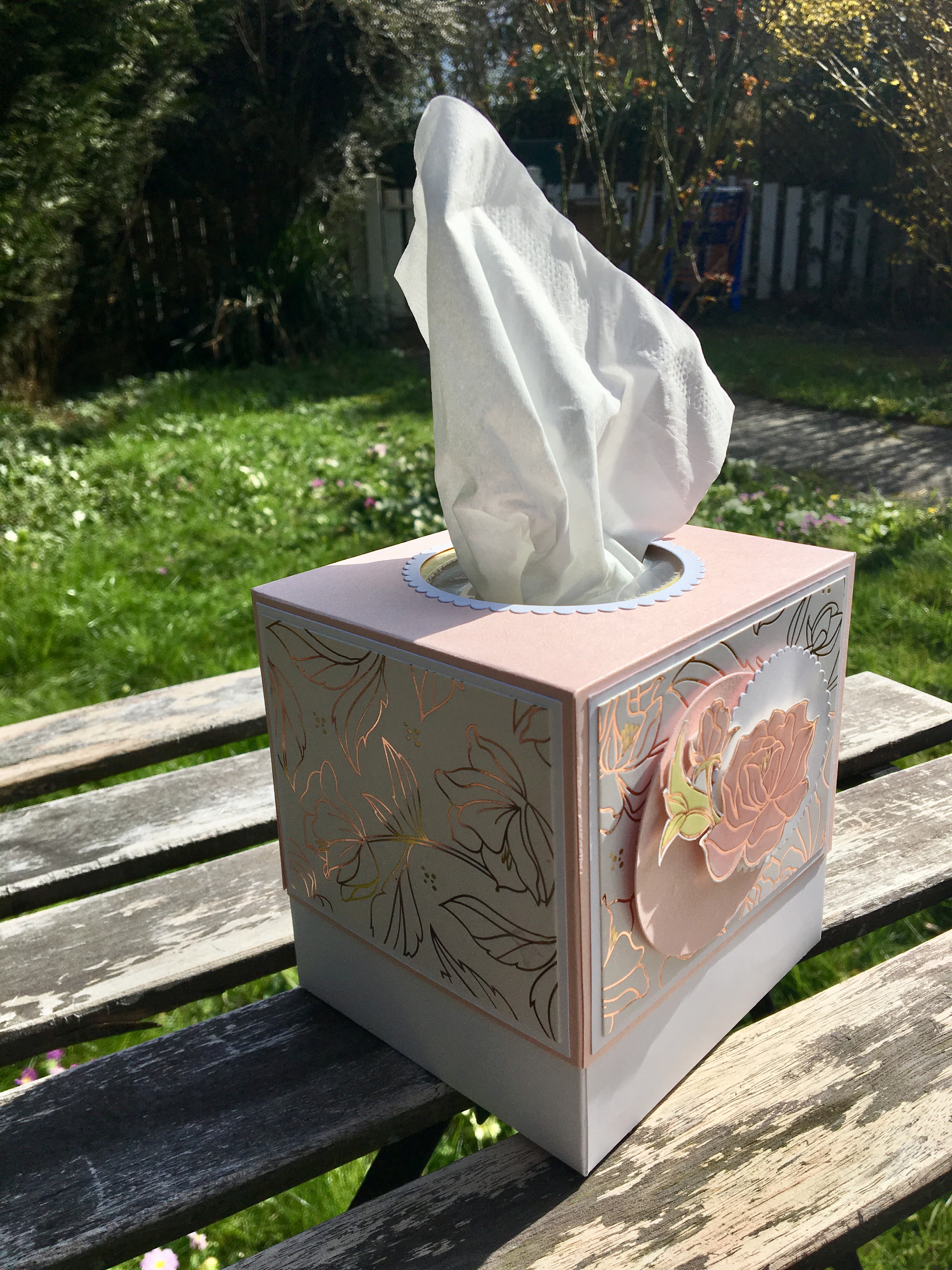 Cette boîte, je l’ai réalisé plusieurs fois car je l’ai offerte à mes différentes hôtesses du mois de mars. Elle est faîte en « Poussière de rose » mais je l’ai réalisé également en « Corail » et c’était très sympa aussi. Comme une nounouille que je suis j’ai oublié de prendre en photo (bravo Sophie!!! pff LOL)