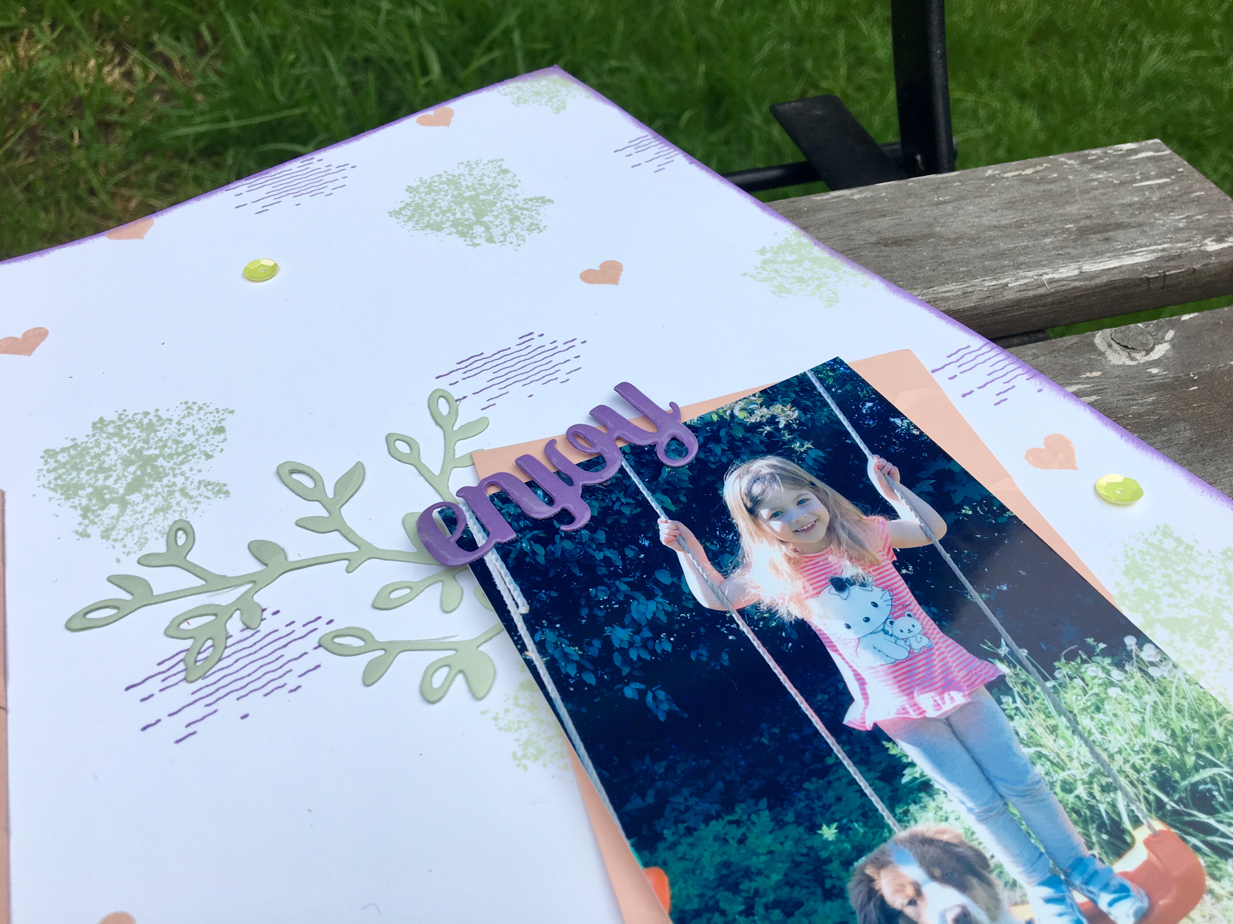 J’aime de plus en plus faire des pages surtout que ce projet, je l’ai réalisé en atelier « anniversaire ado » chez Maurane qui a invité 7 de ses copines pour partager ce moment créatif et fêter ses 14 bougies