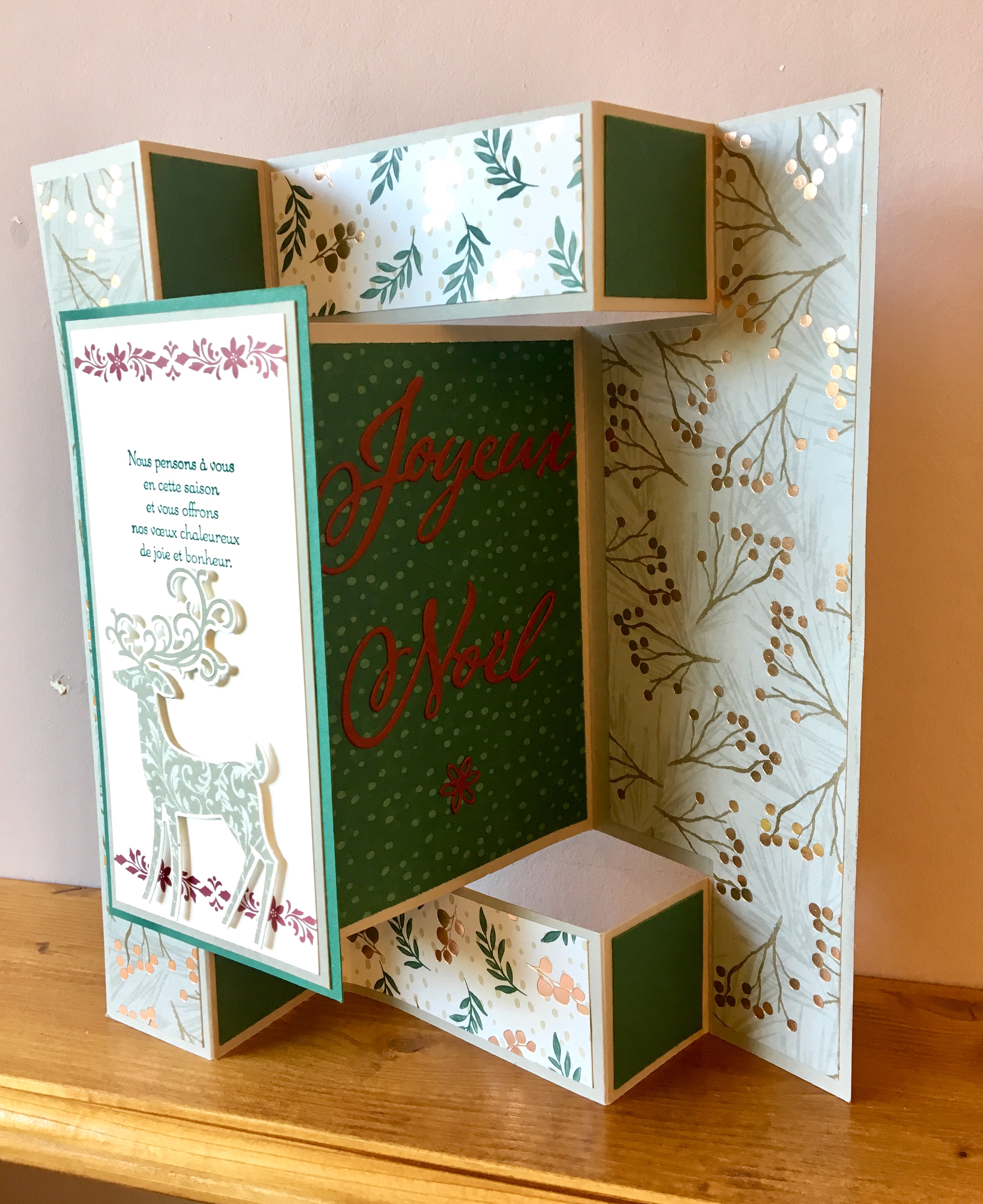 Voici une carte façon origami. Stéphanie s’est inspirée d’un modèle de Sonia