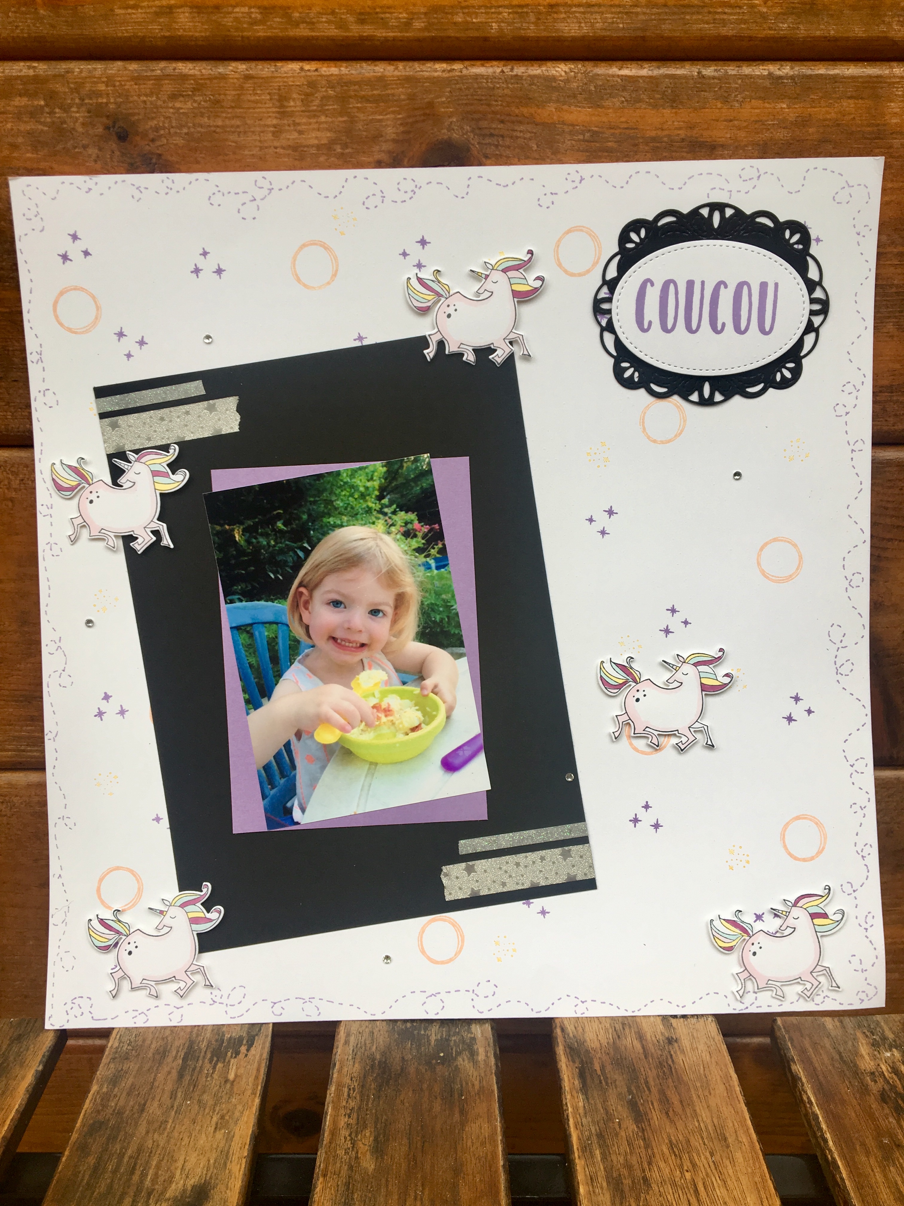 Evidement chaque scrapeuse en herbe est repartie avec sa propre page qu’elle aura fait à son goût car je ramène toujours différentes couleurs et qu’elle pourra accrocher dans sa chambre