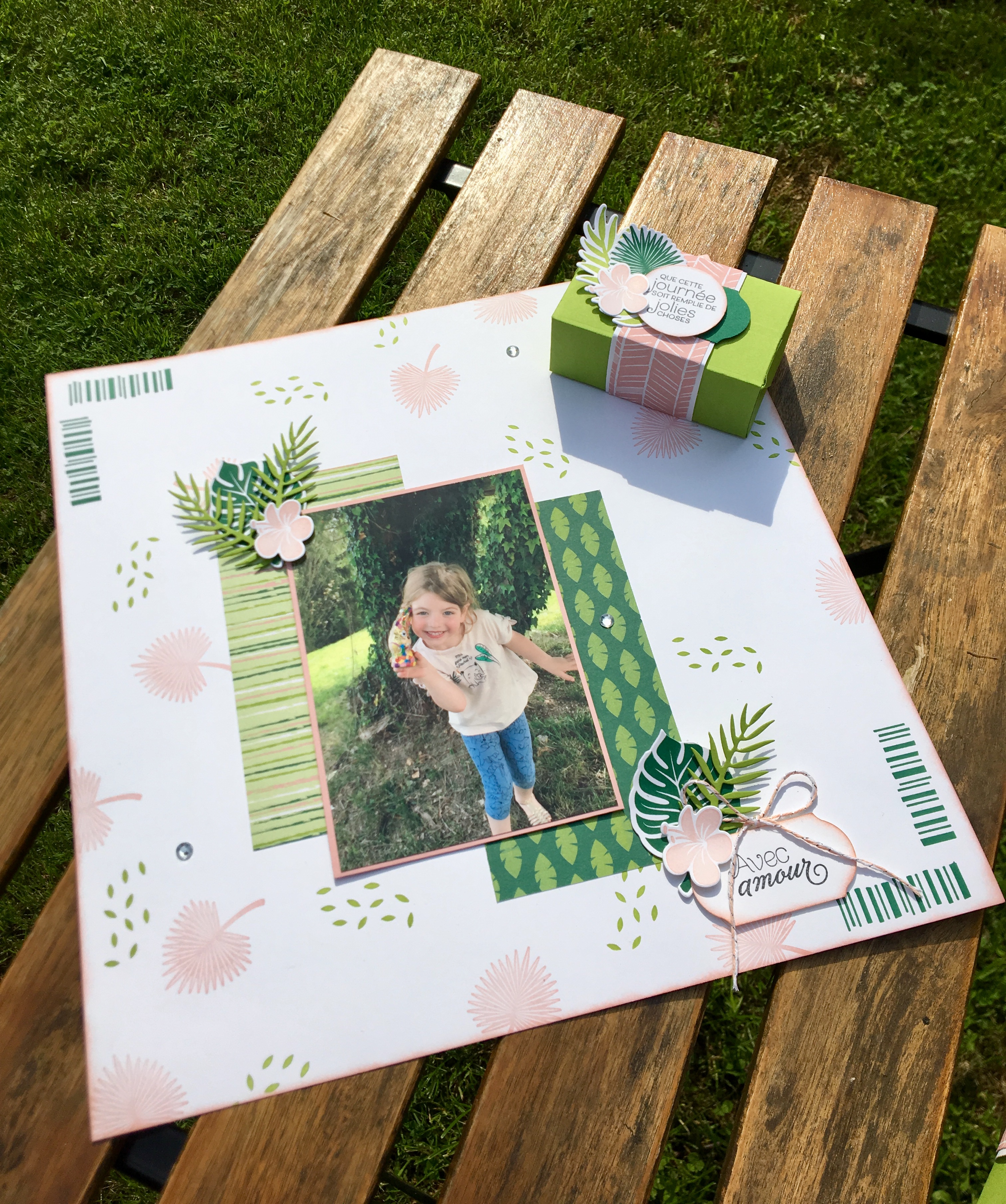Là; le thème était Tropical, voici la page que j’ai faite pour les inspirer, et avec je vous montre les cadeaux offerts aux participantes