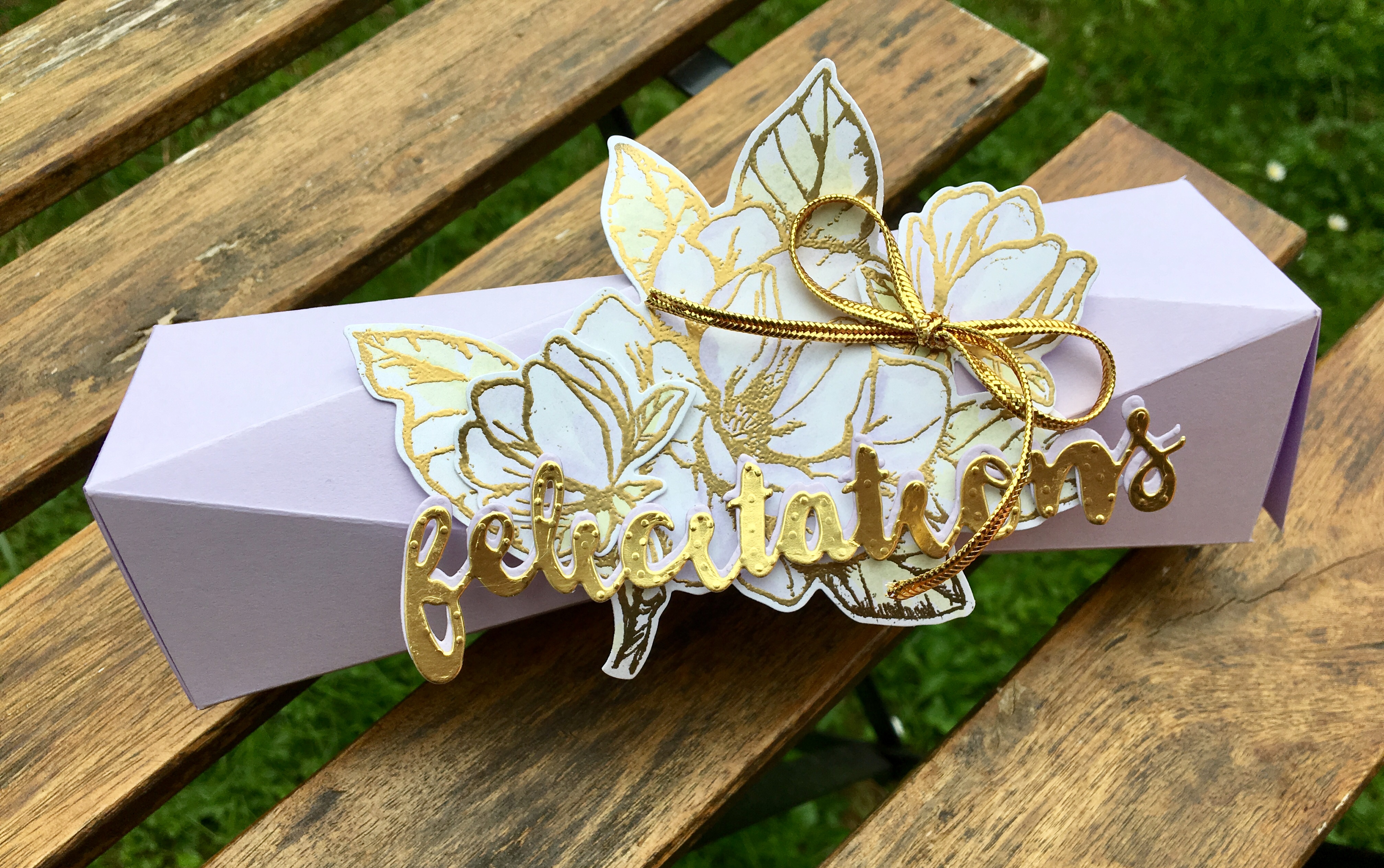 je n’ai pas pu m’empêcher de faire de l’embossage à chaud avec la poudre or et le nouveau papier In color « Plume de Parme »