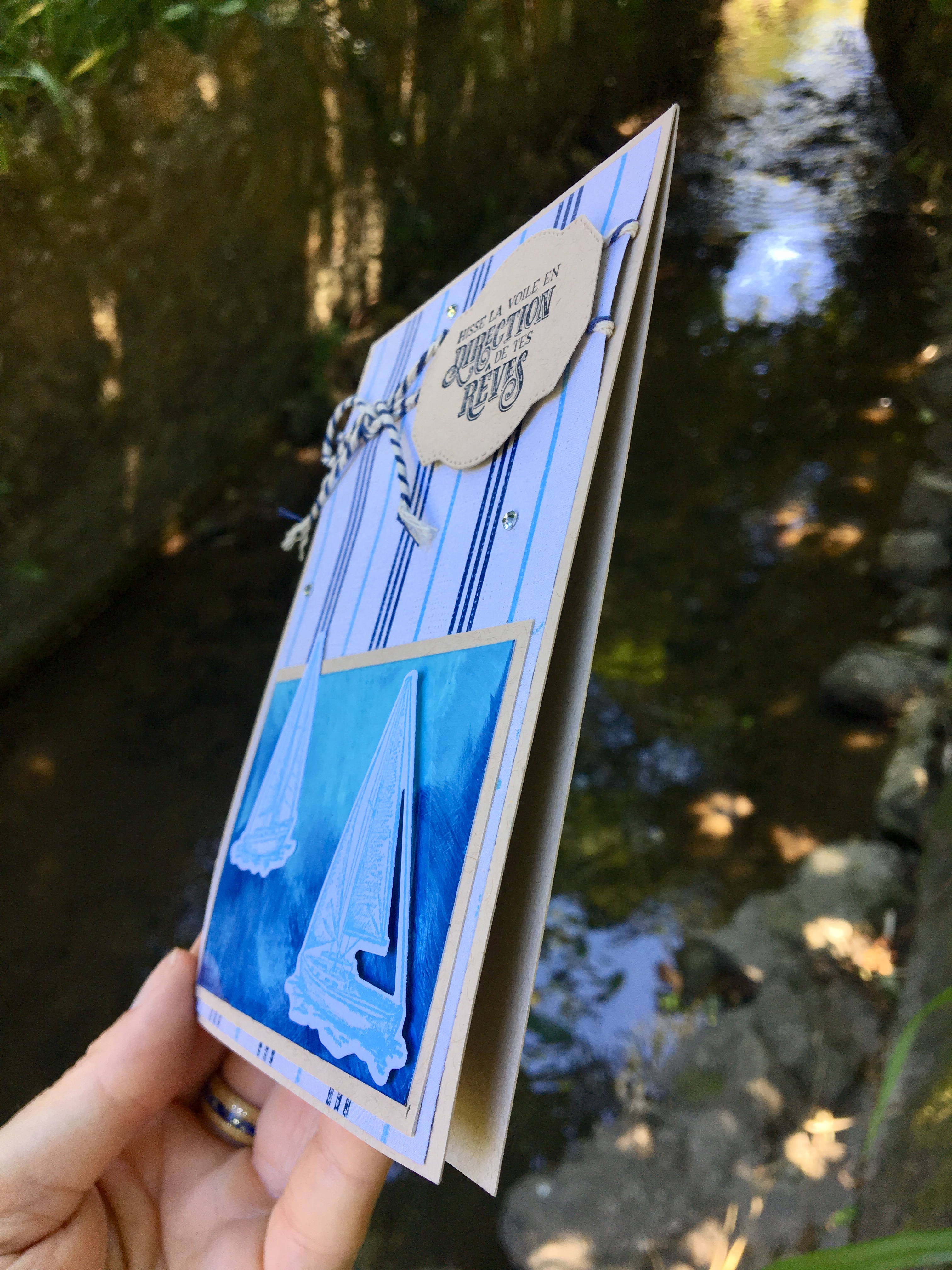 Petit passage éclair pour vous montrer la petite cartounette que j’ai réalisée avec la collection « Larguons les Amarres » P 144 du catalogue Stampin Up