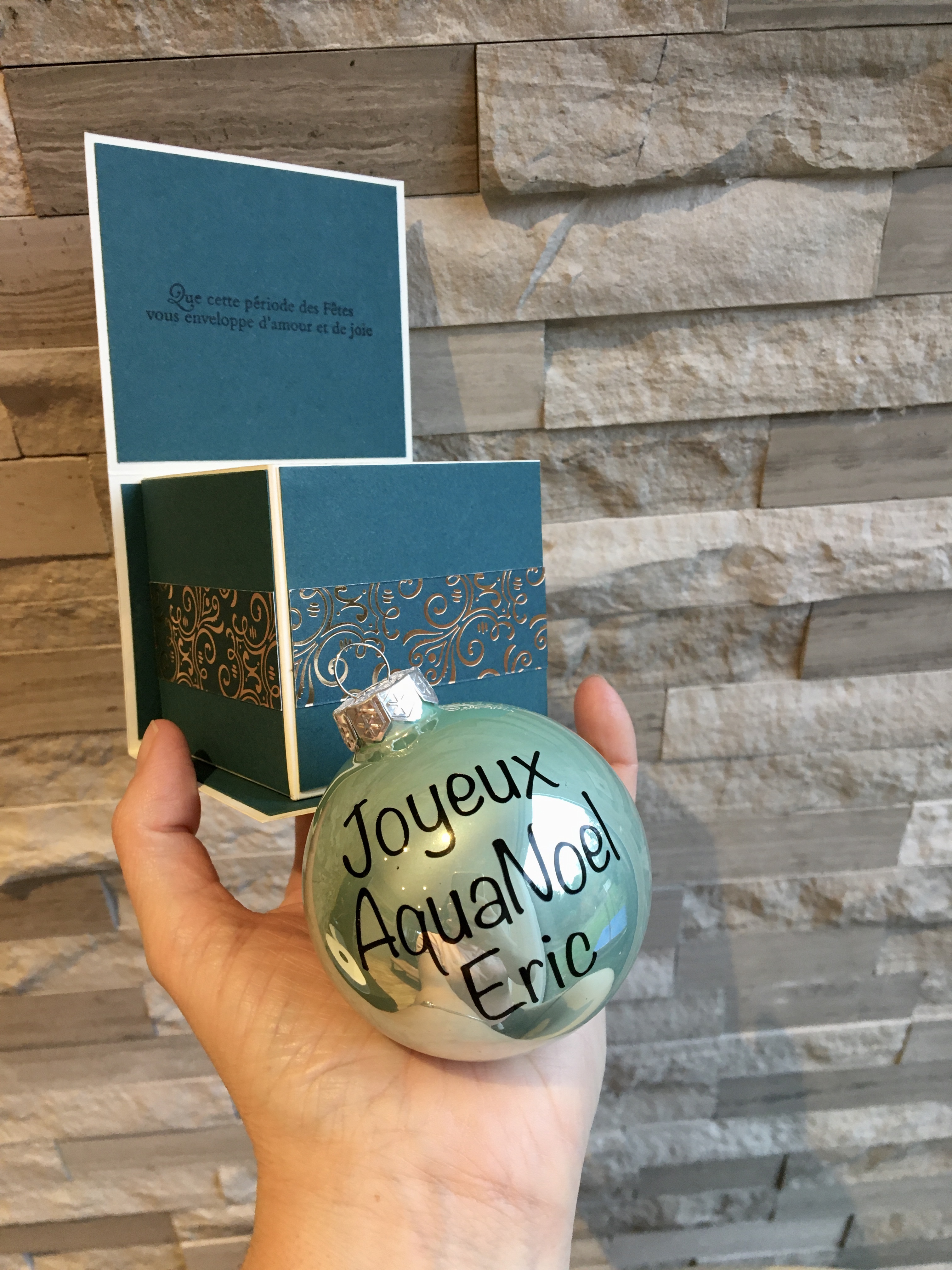 Pour le remercier, j’ai réalisé une boule personnalisé avec ma cameo et forcement la boîte qui va avec