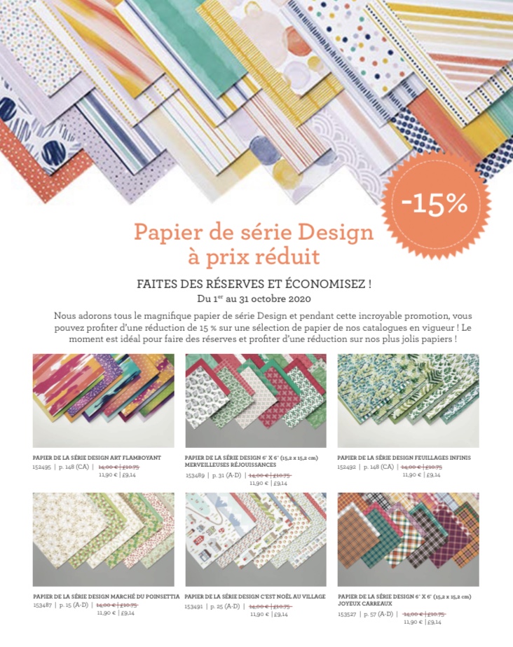 Juste un micro rappel: en ce 19 octobre 2020, on oublie pas que Stampin Up fait -15% sur une sélection de papier design