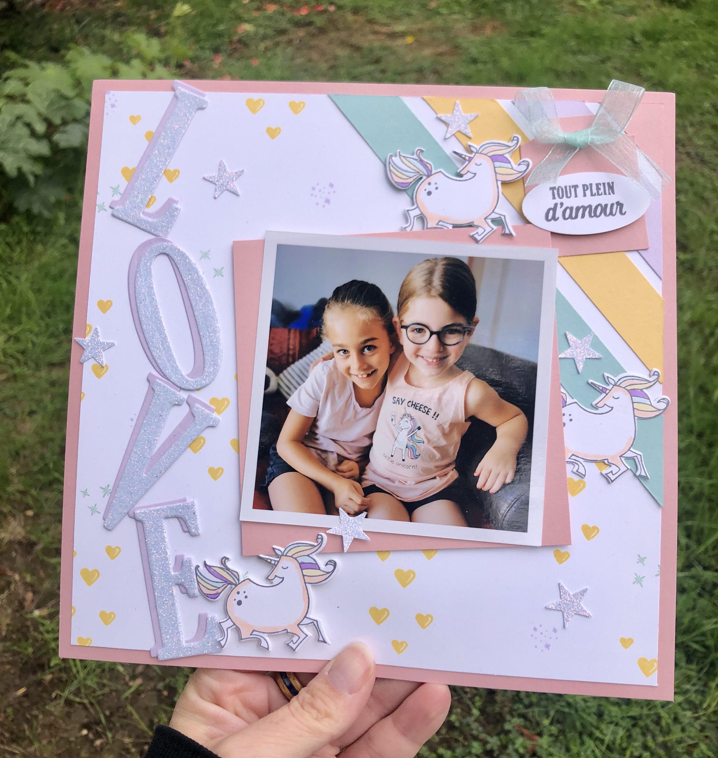 Cette page m’a également servie de base pour animé un atelier de Scrapbooking version pré ado pour l’anniversaire d’une puce dont le thème était vous (l’aurez compris:) LICORNES