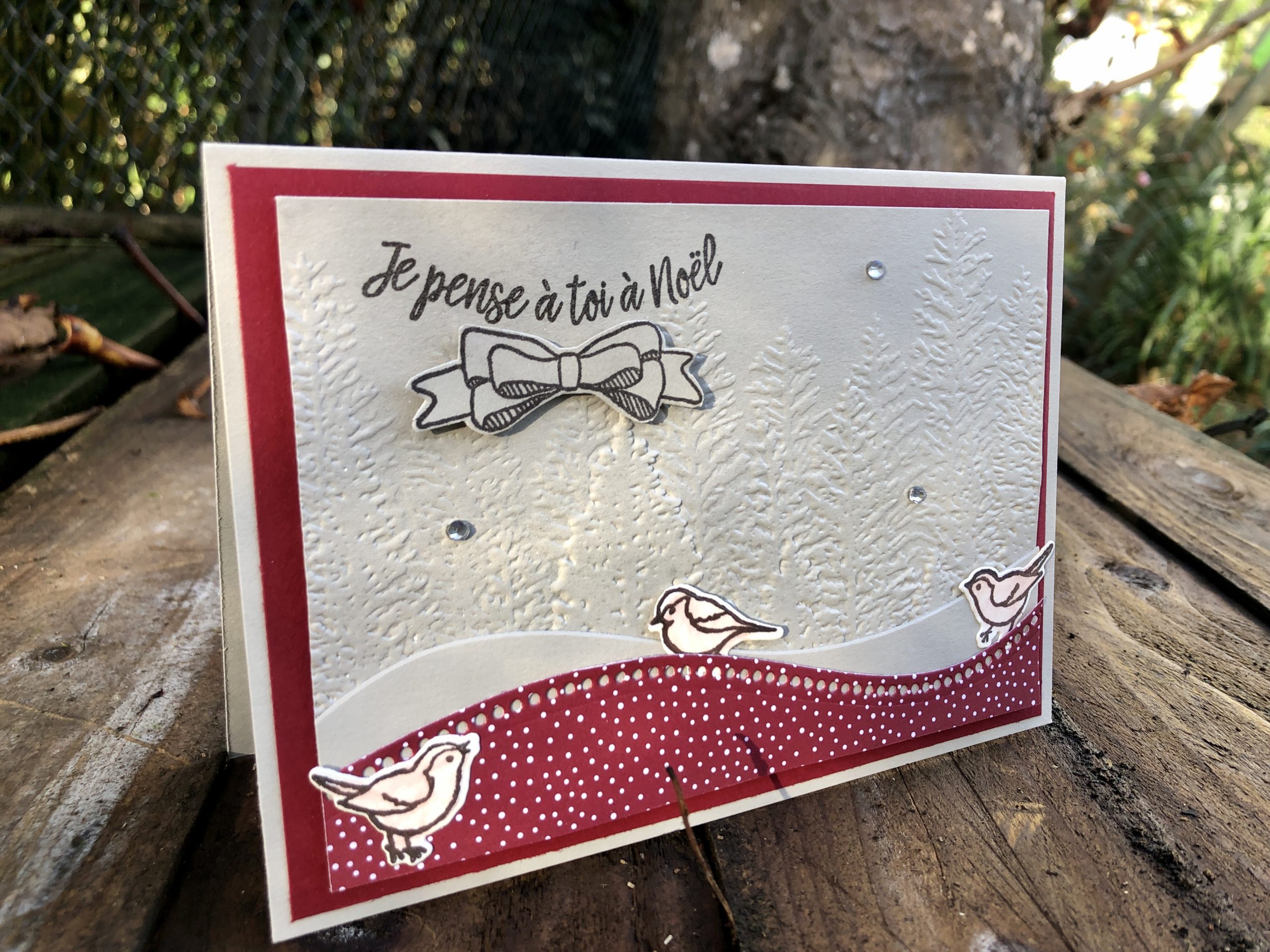 Pour cette carte, j’ai utilisé le plioir de gaufrage 3D « Foret de Conifères »