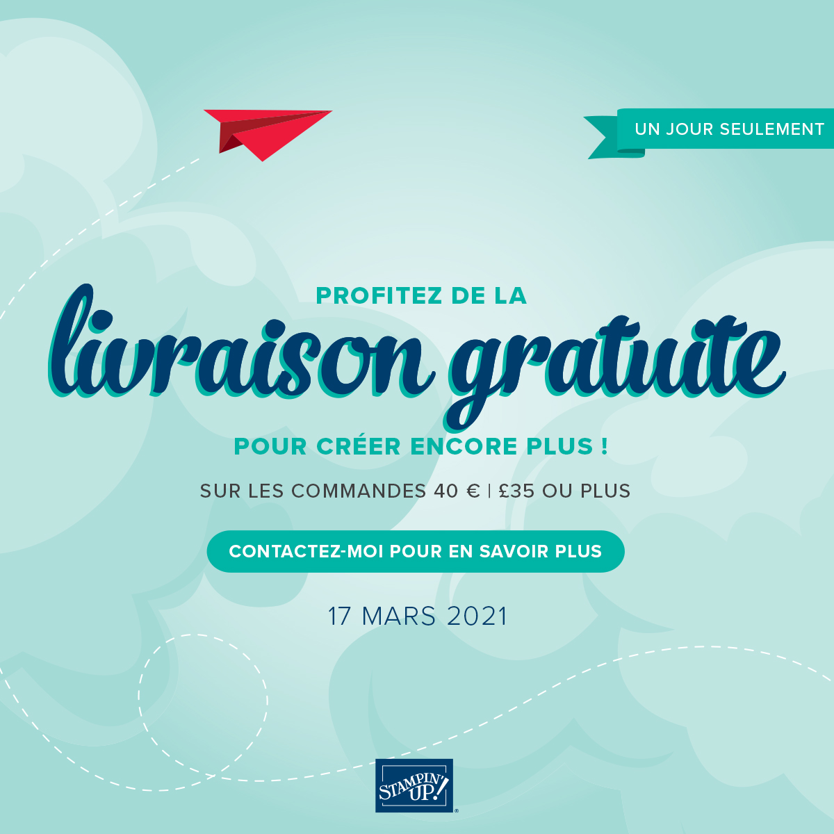 Demain et demain uniquement STAMPIN UP offre les frais de port des 40€ d’achat