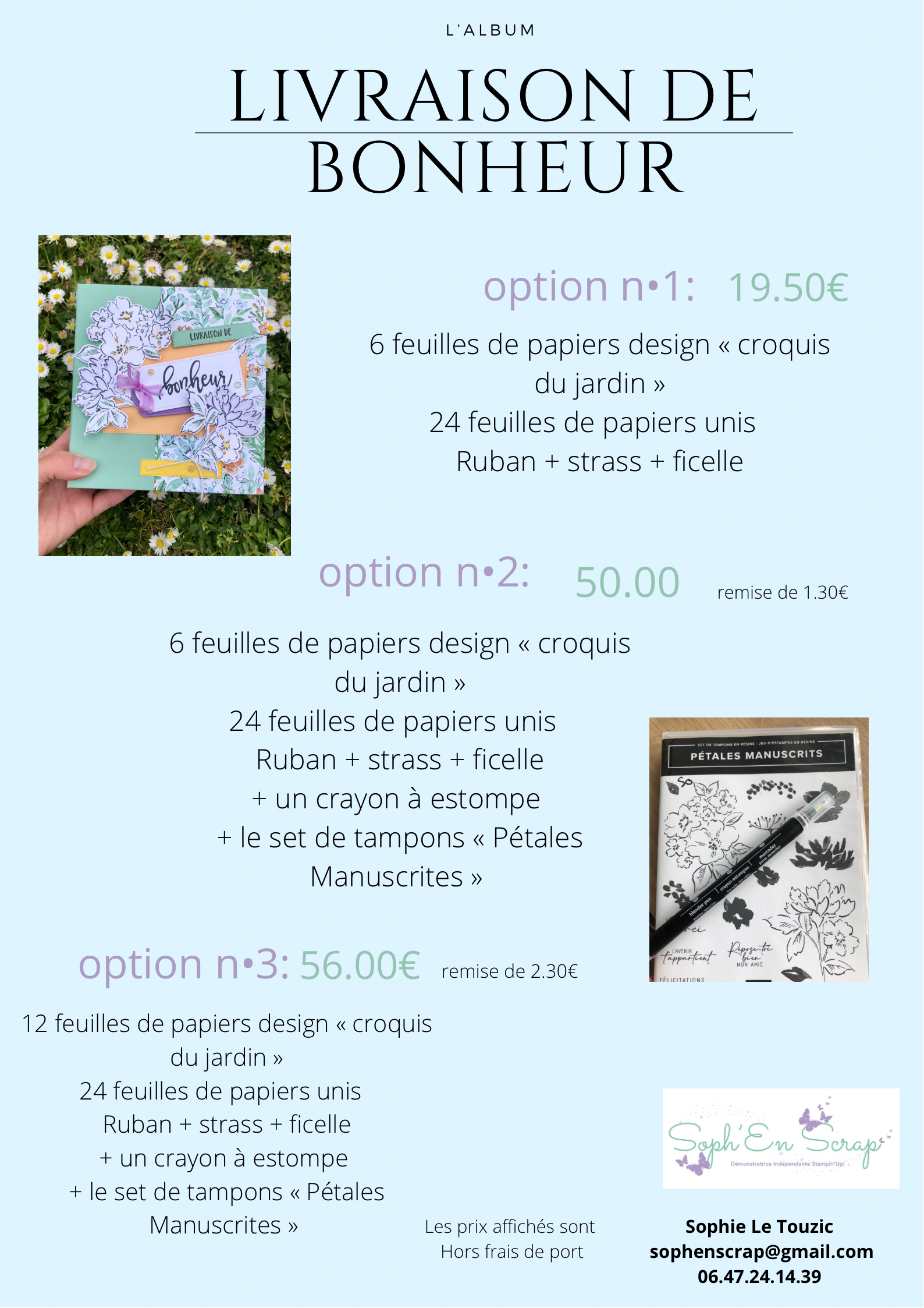 Alors si jamais vous ne voulez rien louper de mon actualité je vous conseille de me suivre sur ma page Facebook Soph’ En Scrap et de mon côté je vais remettre les pendules à l’heure et reprendre le chemin des publications ici