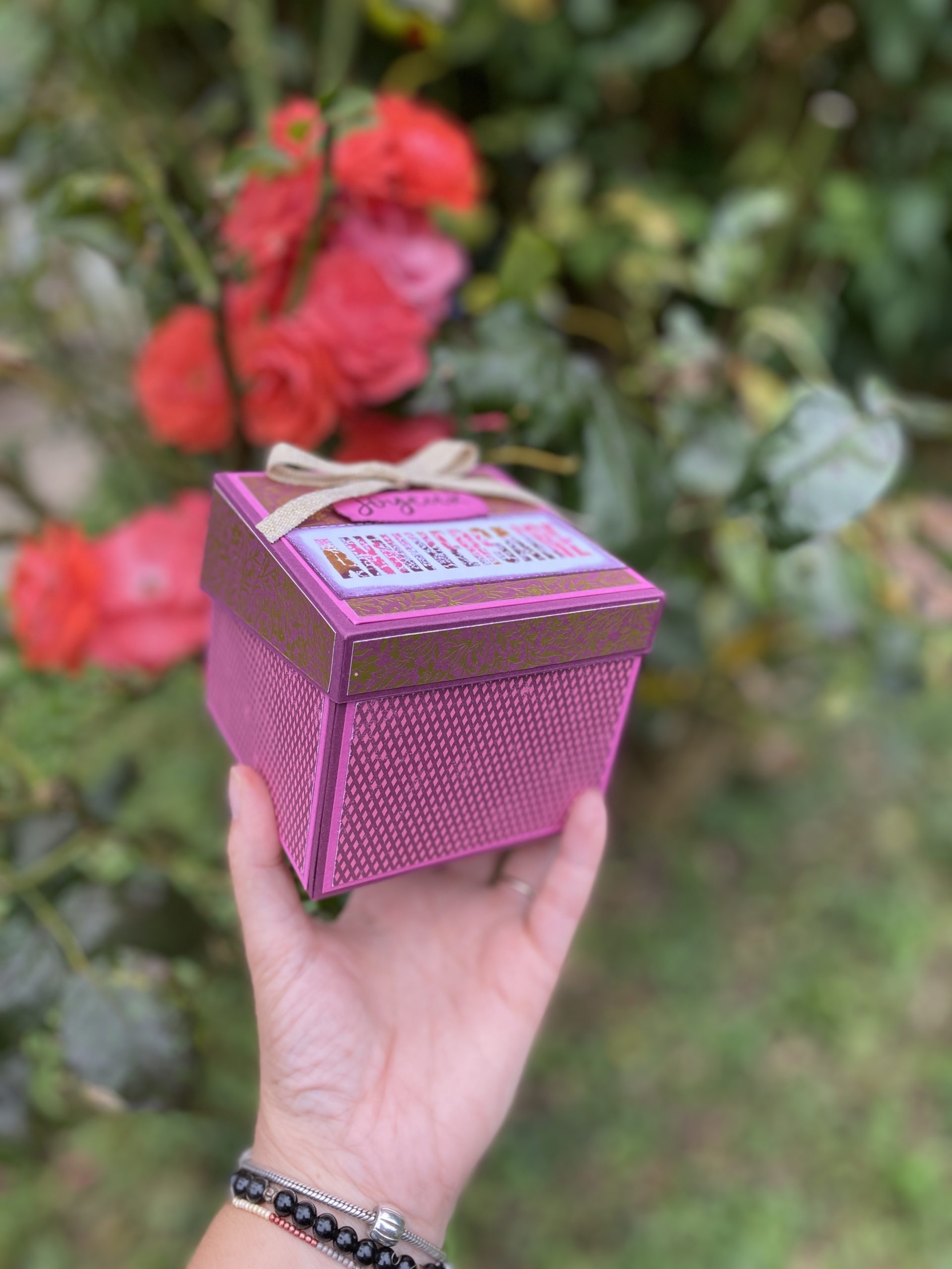 Je viens vous montrer la boîte que j’ai réalisé sur mesures pour emballer un cadeau d’anniversaire