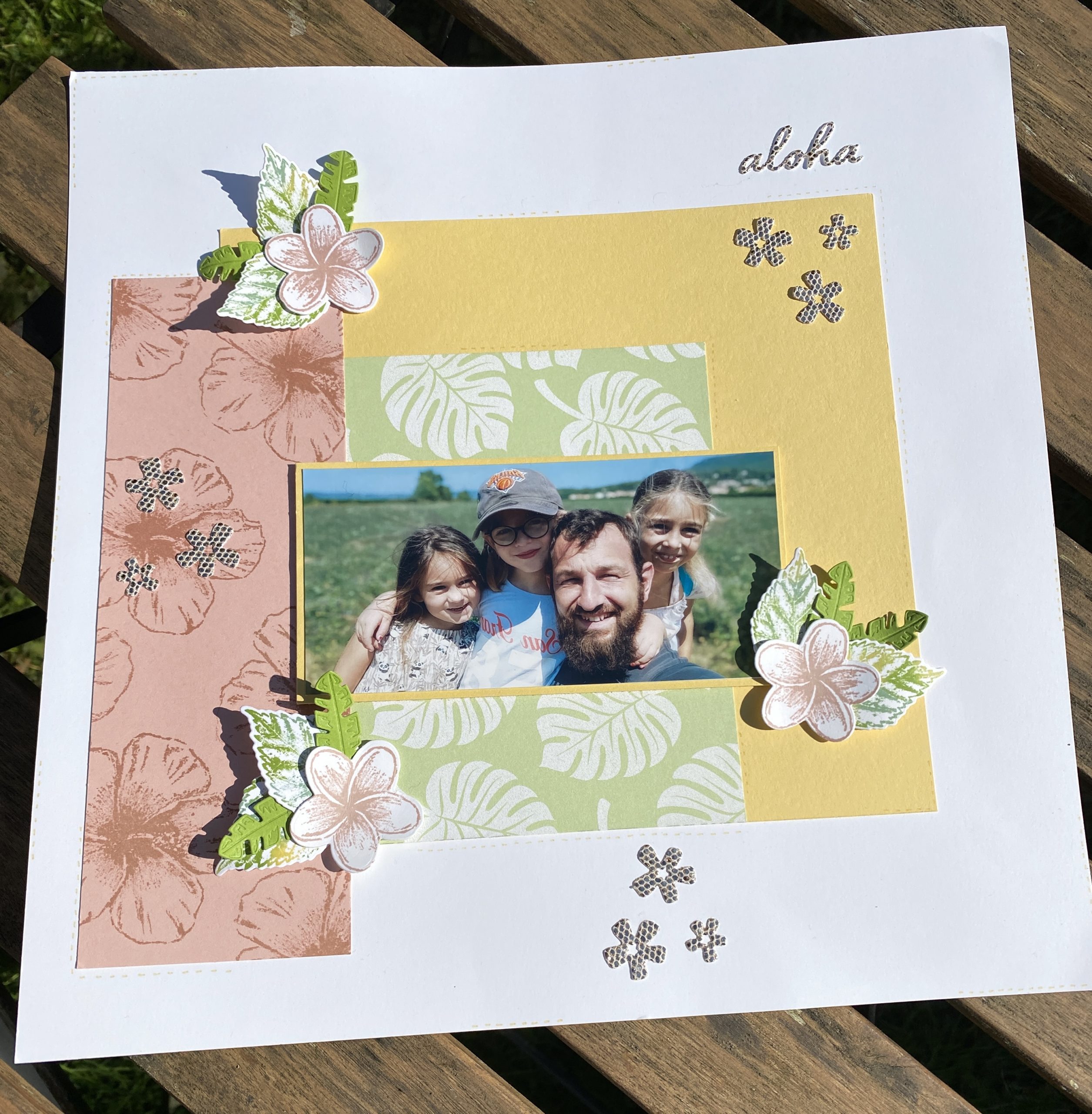 J’ai réalisé cette page pour montrer en exemple à Eva et ses copines (elles étaient 11 en tout!) Sa maman m’a fait venir pour un atelier anniversaire. Thème Tropical