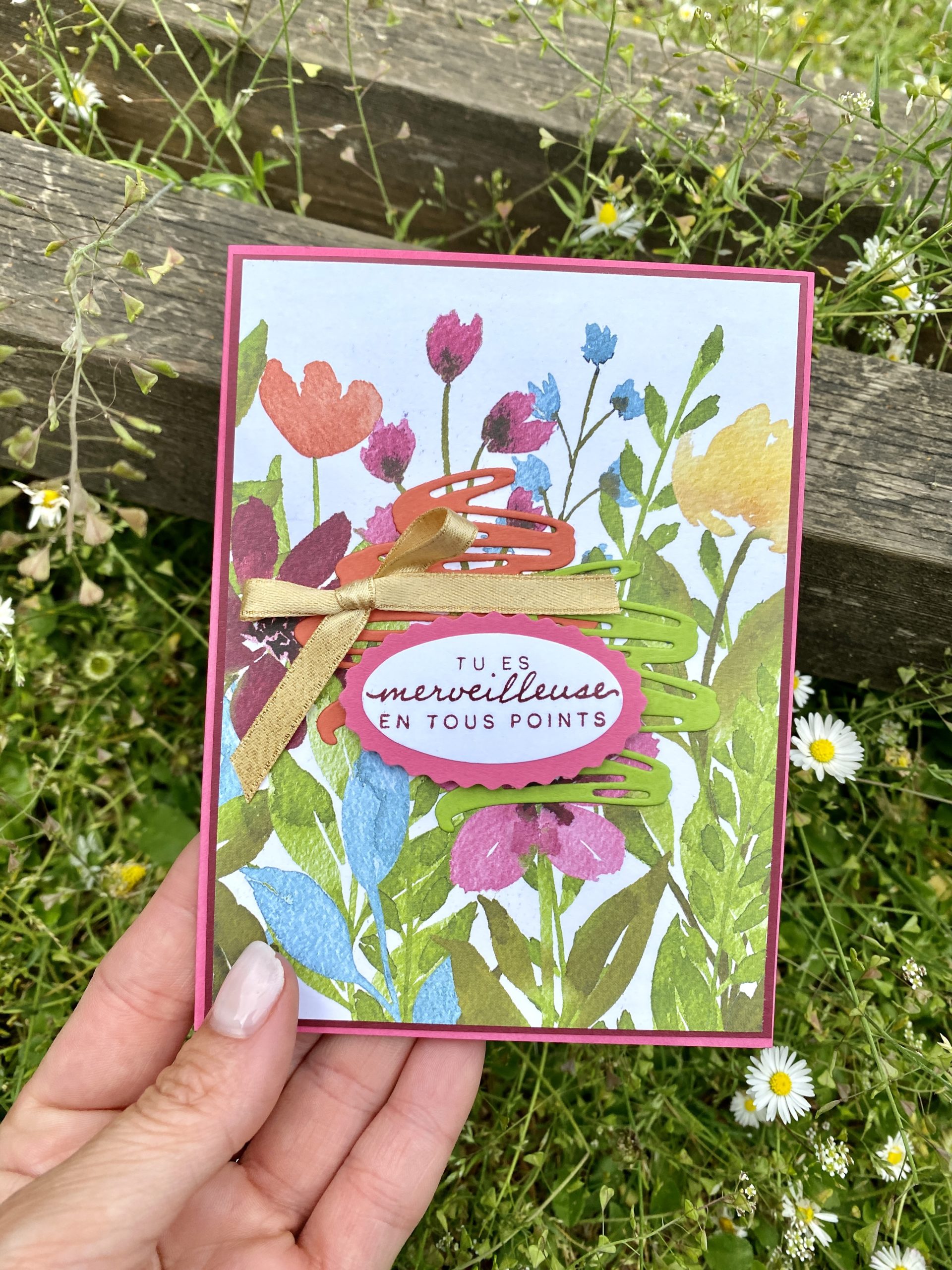 Lors de ce live, nous réaliserons des tamponnages ton sur ton et nous travaillerons avec la très jolie collection de papiers design « Beauté à fleur d’eau »