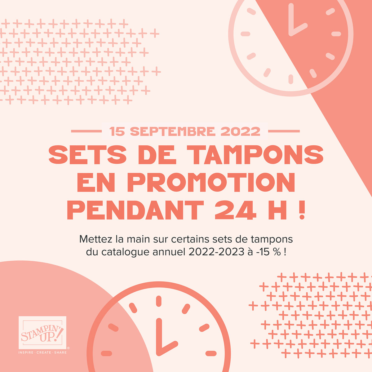 Le 15 septembre soit dans 2 dodos, Stampin Up! nous propose une vente flash sur une sélection d’articles avec un très joli -15% sur une très jolie sélection de sets de tampons