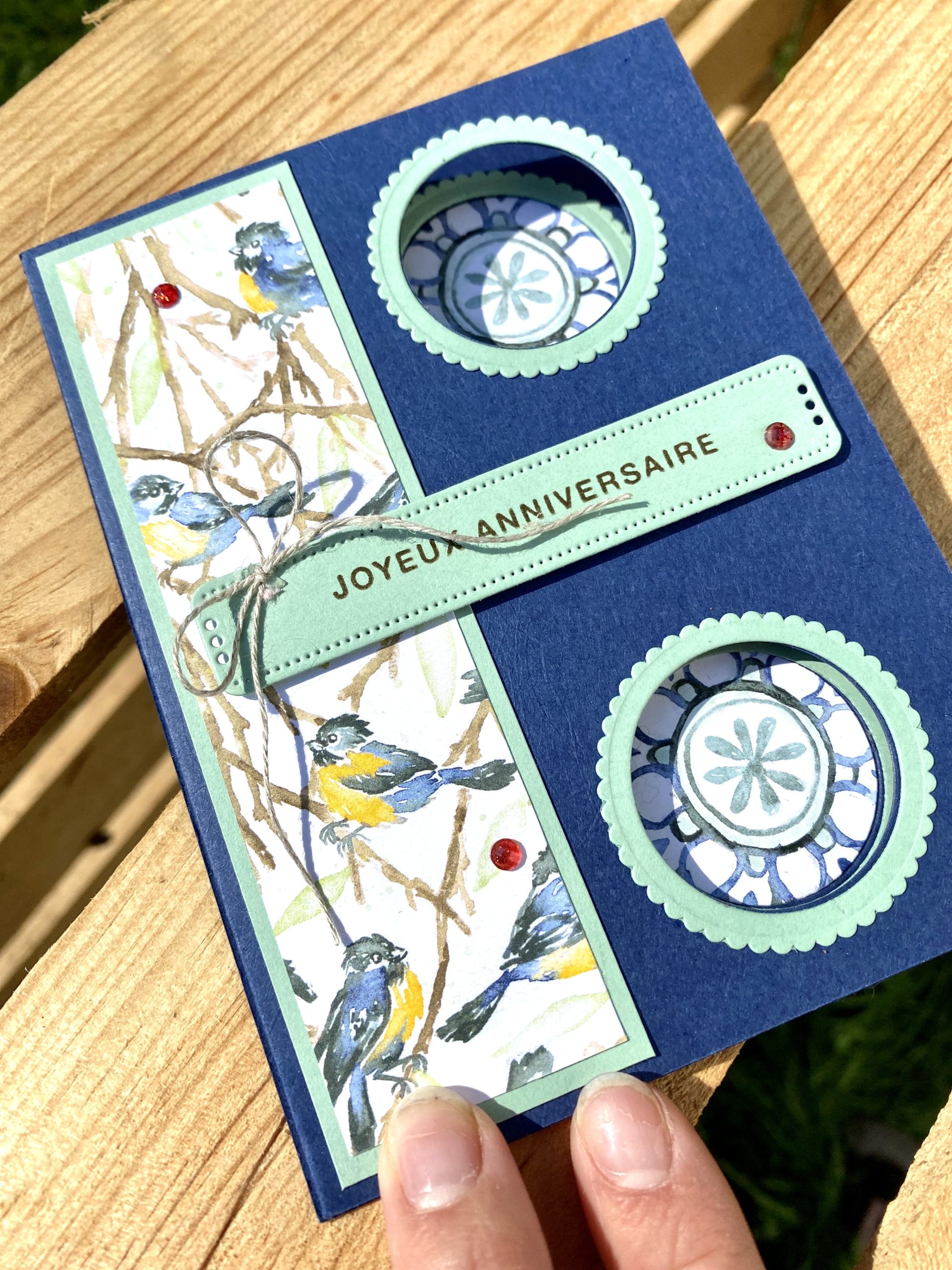 Et oui c’est une carte qui délivre un message surprise quand on l’ouvre entièrement. En gros elle envoie du pavé cette carte!!! hihiiii