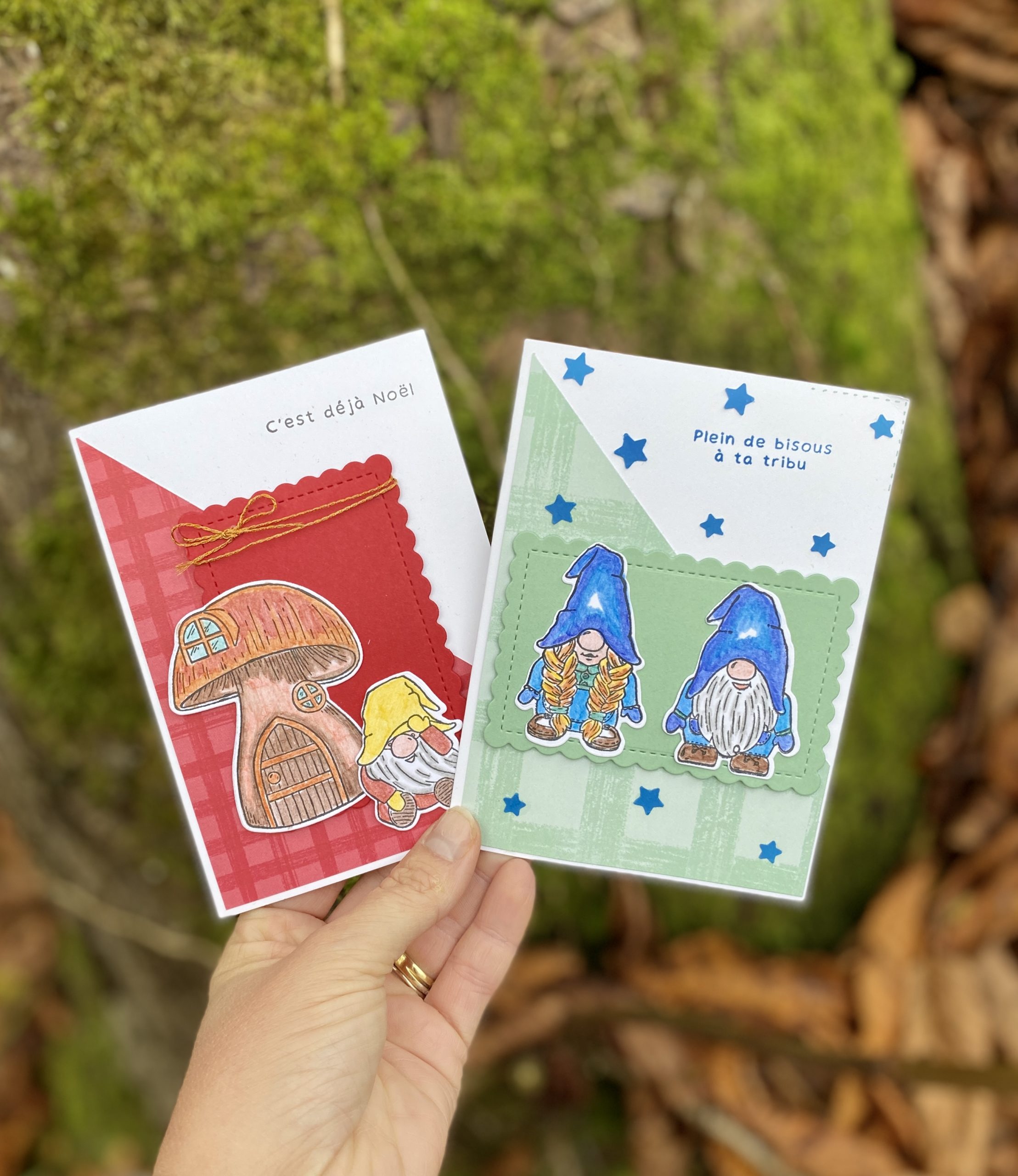 Je vous partage 2 cartes que j’ai réalisé juste pour le plaisir de scraper et de jouer avec les crayons aquarelles