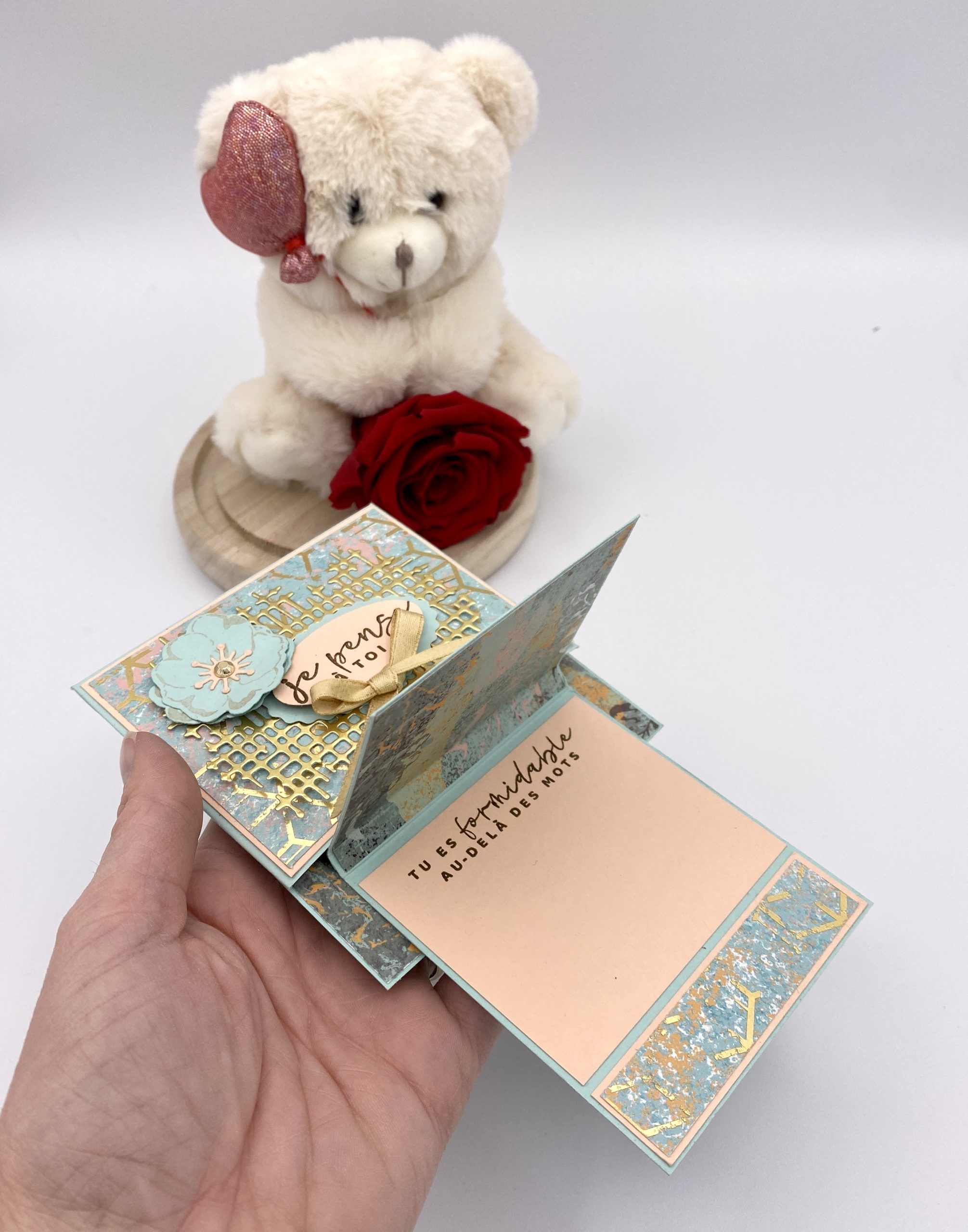 Quand la carte est fermer, elle mesure 10×11 cm ce qui permet de l’envoyer facilement par la poste et ça c’est top!!