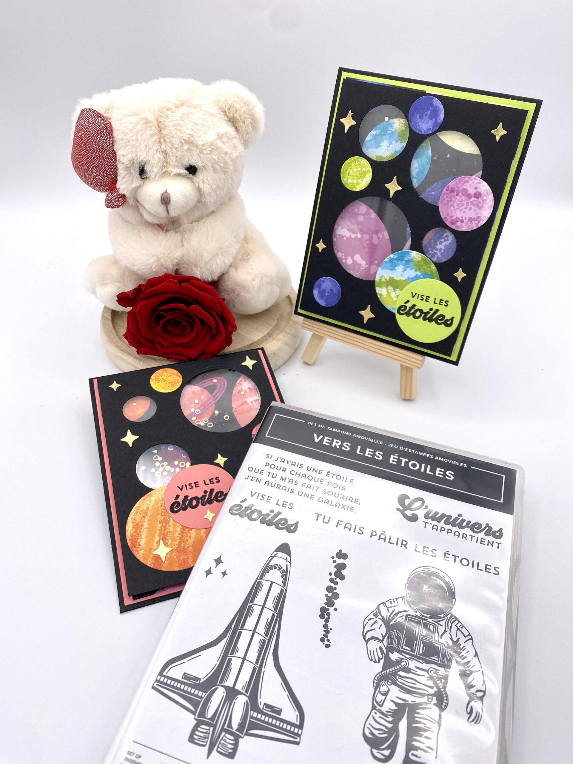 Et si je vous montrais mes petites cartes toutes mimi que j’ai réalisé avec la collection « Odyssée vers les étoiles »…