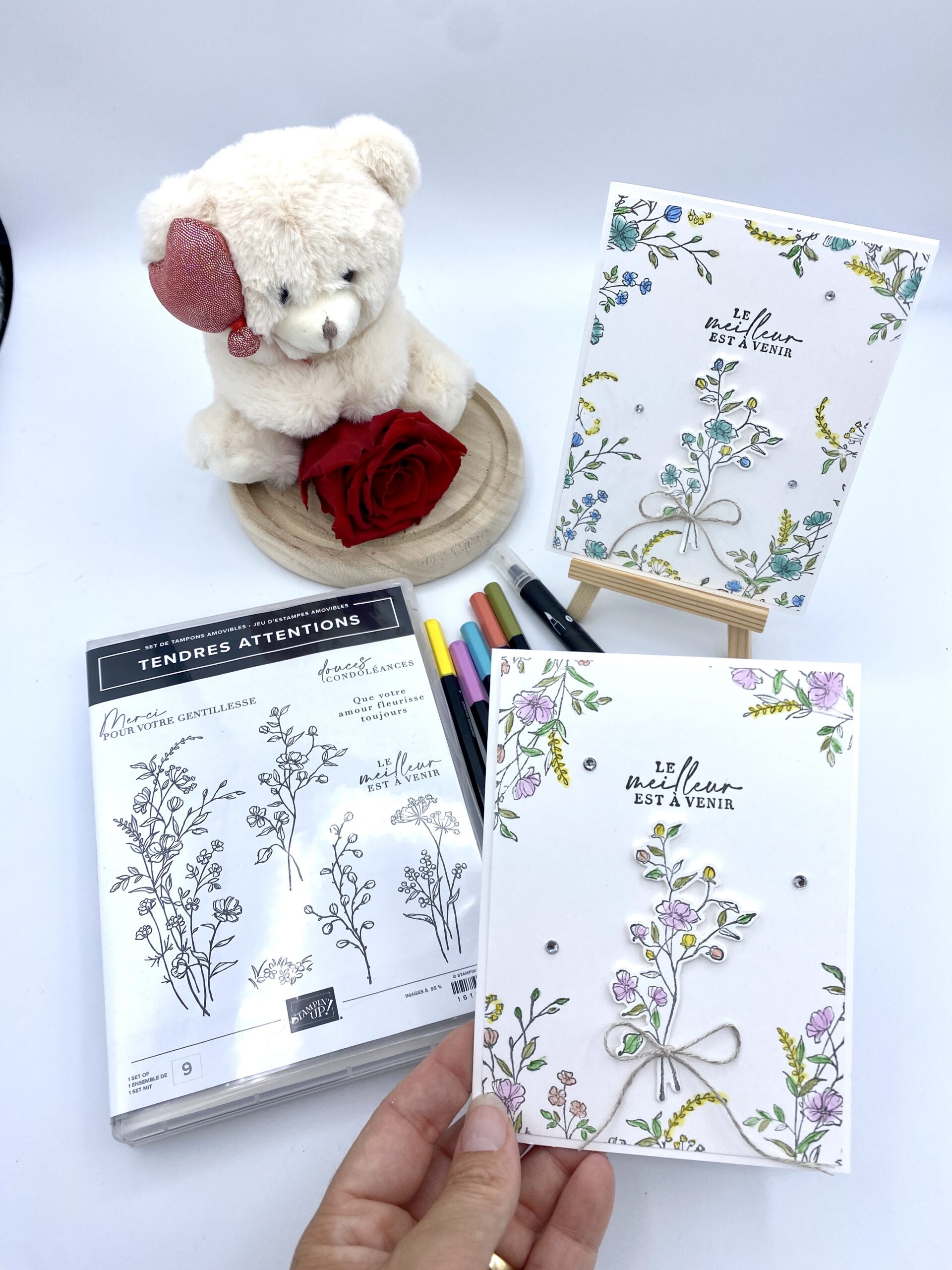 J’ai joué avec le set de tampons « Tendres attentions » qui se trouve P22 du catalogue annuel Stampin’Up!