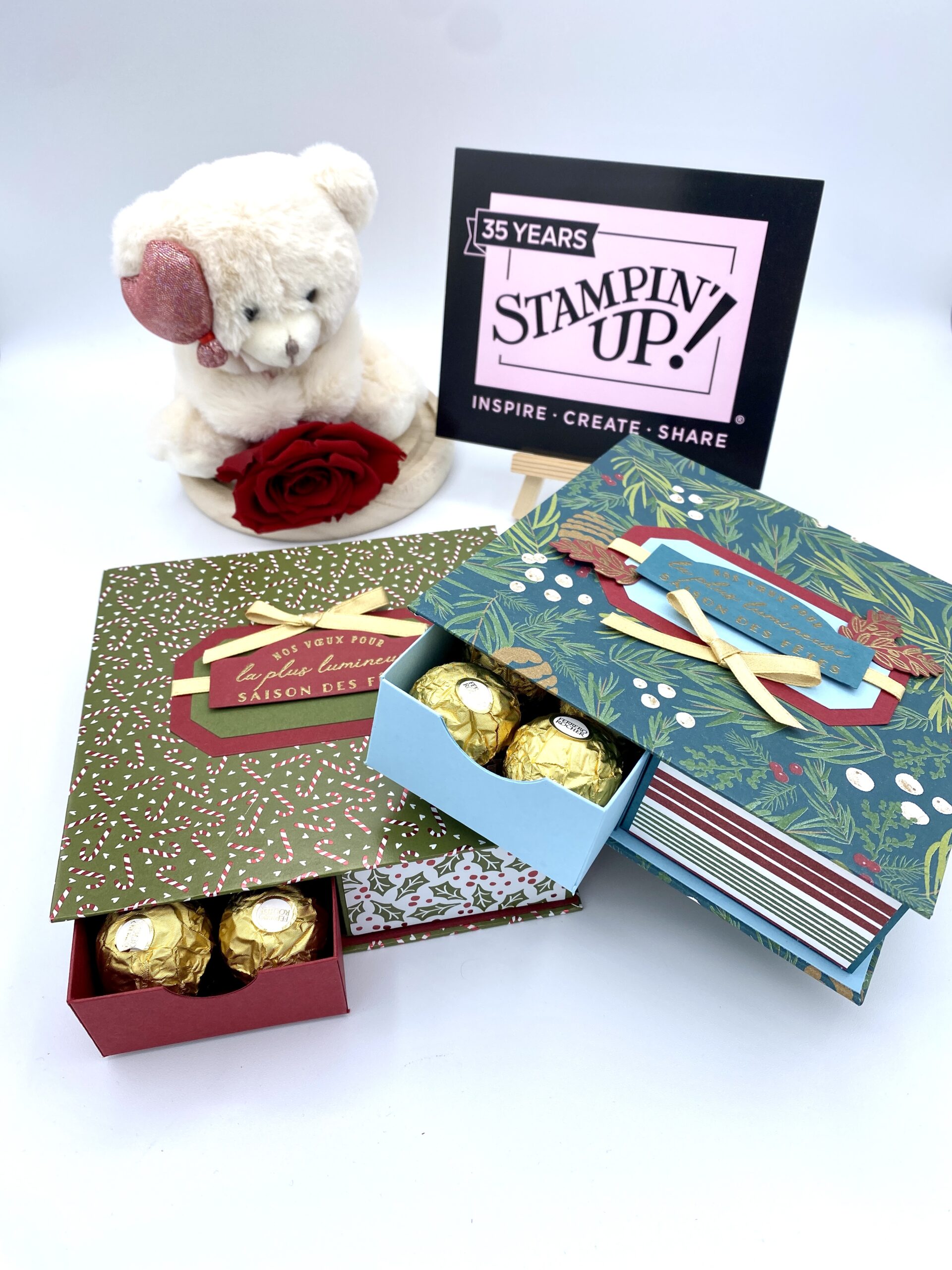 Moi, j’ai utilisé pour refaire ma boîte le papier design qui est dispo uniquement dans les exclu en ligne papier design « NOËL RESPLENDISSANT »