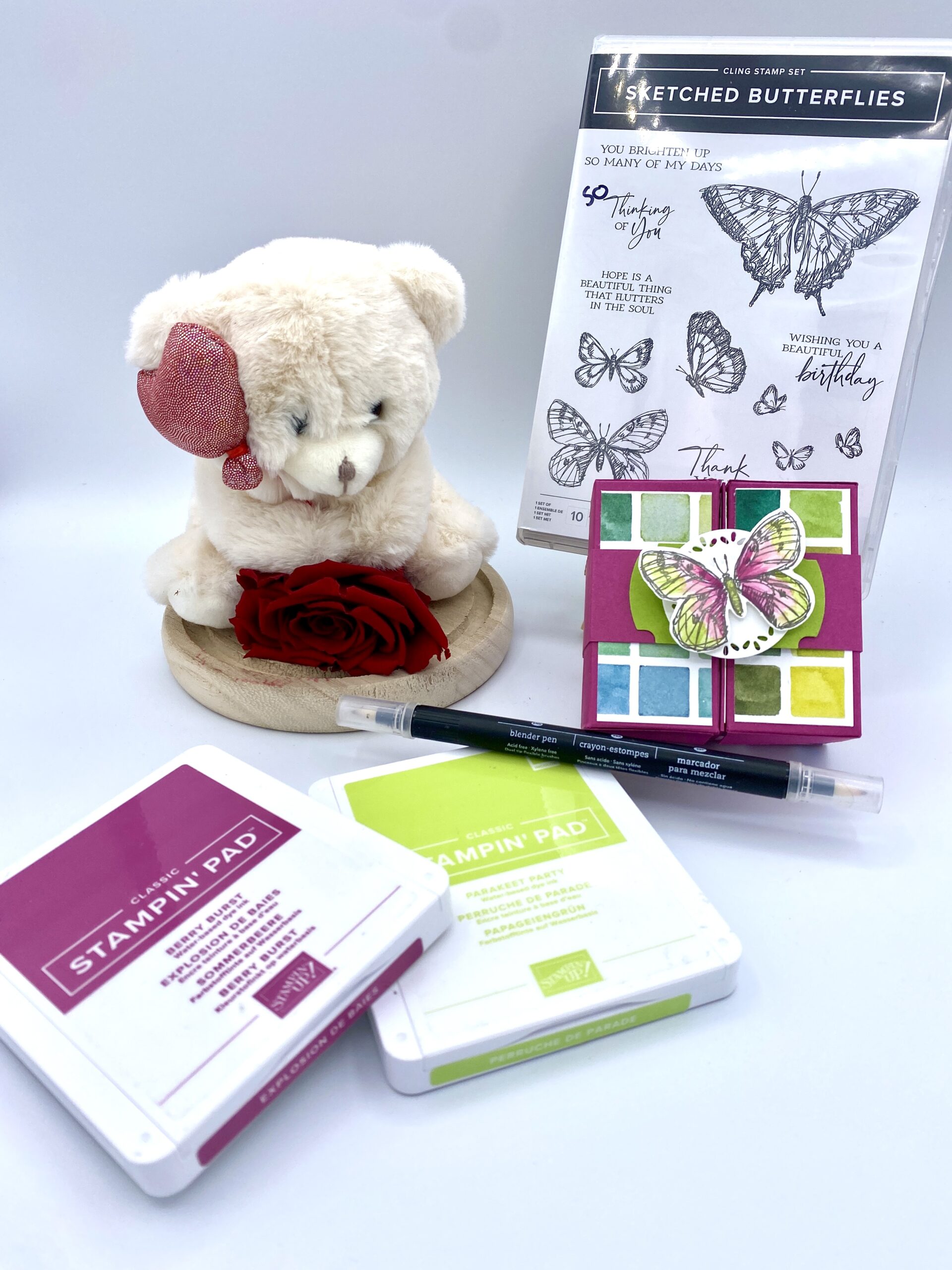 Une double boite, avec plein de couleurs, mon crayon Ă estompe, des papillons, du fun, du partage. Et hop c’Ă©tait la recette de ce live