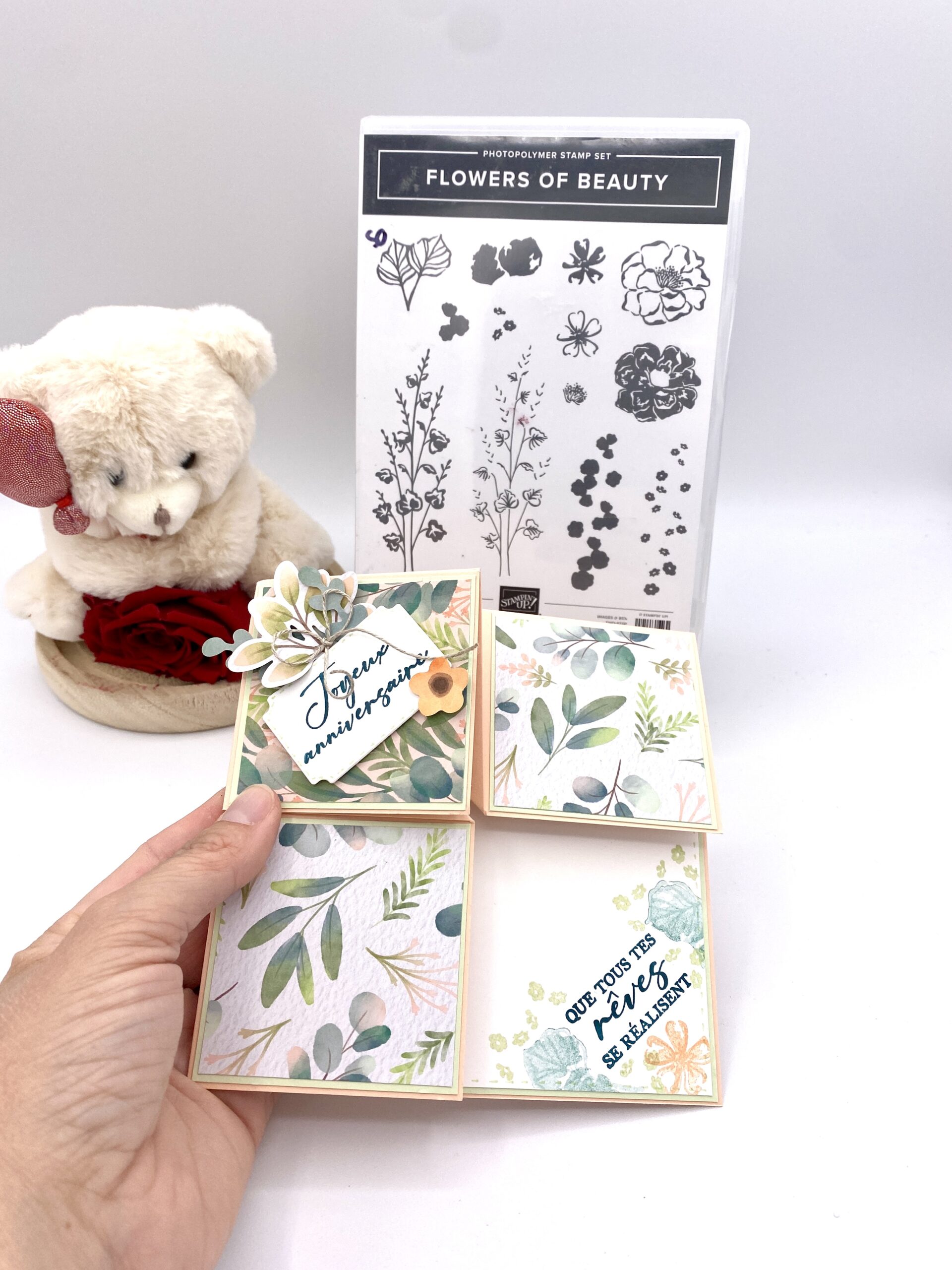 Nous avons réalisés une carte avec le papier design « Cadres et fleuri » et les sentiments viennent du set « Amour sans limites »