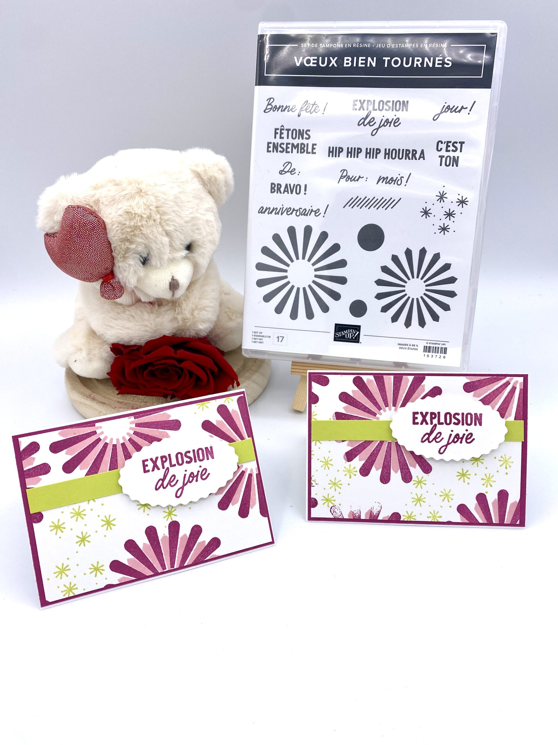 J’ai donc eu envie de faire une Ptite sĂ©rie avec le set de tampons que j’adore trop car je trouve qu’il respire le soleil: c’est « Voeux bien tournĂ©es »
