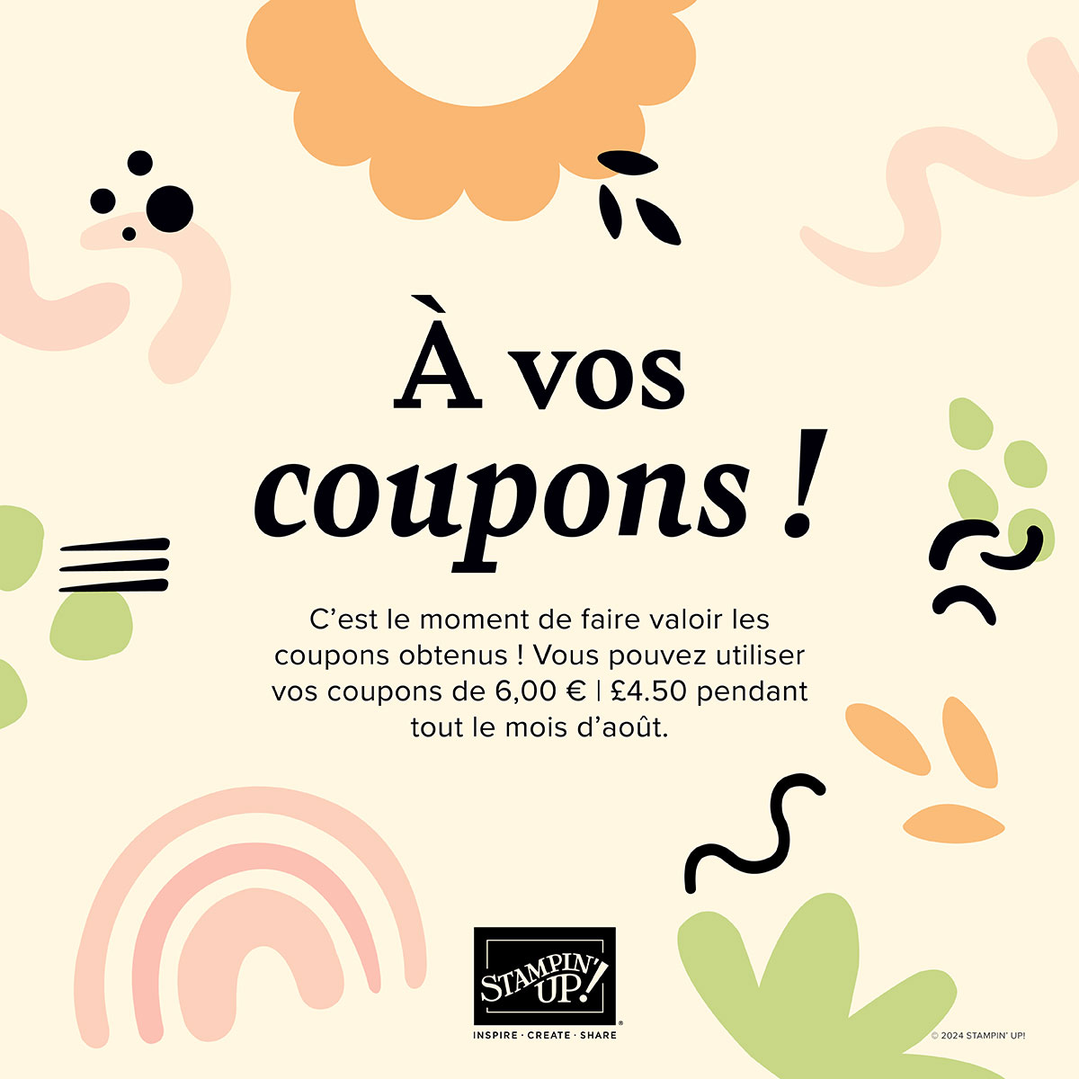 Alors faites vous plaisir, et n’oubliez pas d’inclure le code hĂŽtesse du mois d’aoĂ»t car en plus de la remise de 6⏠offerte par Stampin’up!, je vous enverrai une Scrap-enveloppe le mois suivant