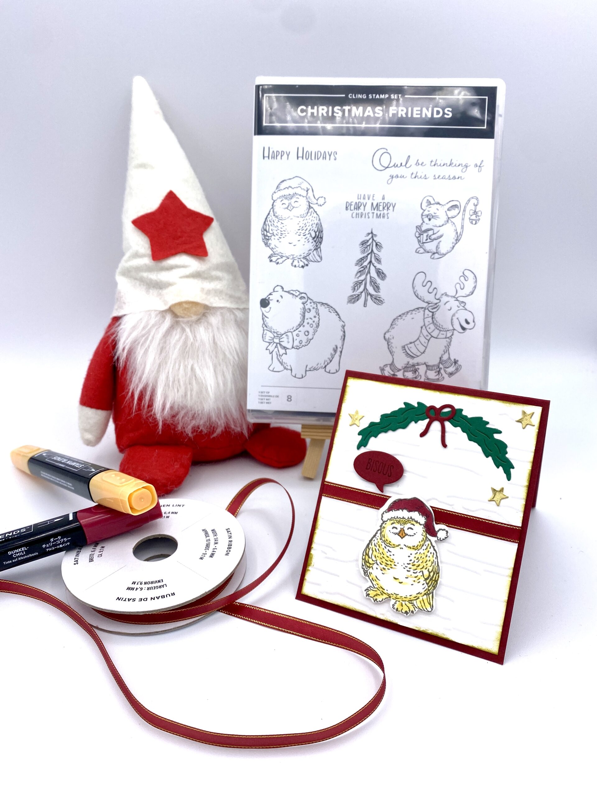 J’ai joué avec un set que je trouve trop trop mimi, c’est « Christmas Friends » et quand c’est des sets de tampons comme ça ou y’a matière à coloriser, j’aime utilisé mes crayons aquarelles et mon crayon à estompe car je trouve que l’on peut faire plein de nuances sympa