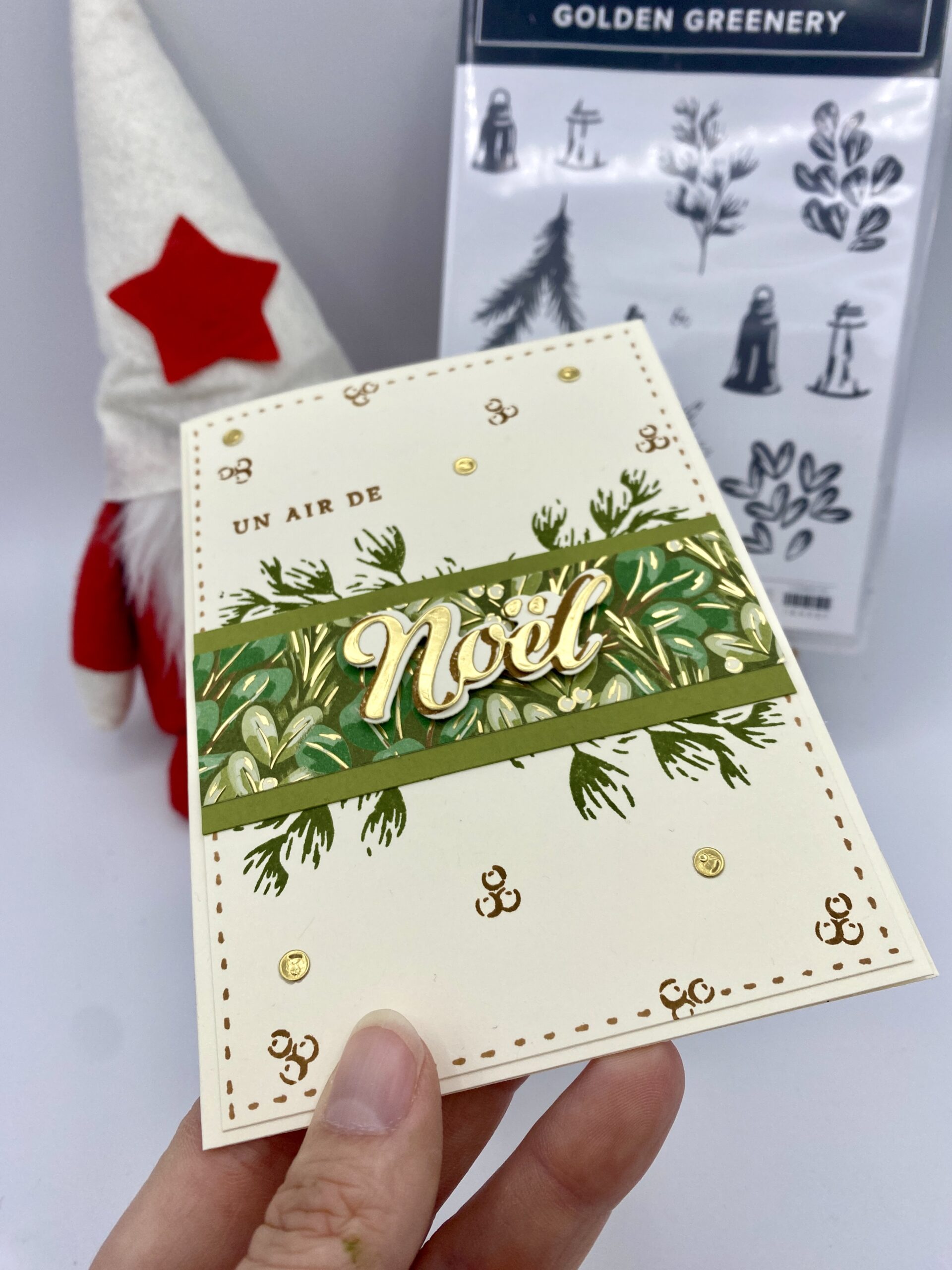 C’est le lot « Golden Greenery » ref: 164117 et pour le sentiment car oui y’a pas de texte dans ce lot j’ai utilisé le lot « Saison de paix » ref: 164022