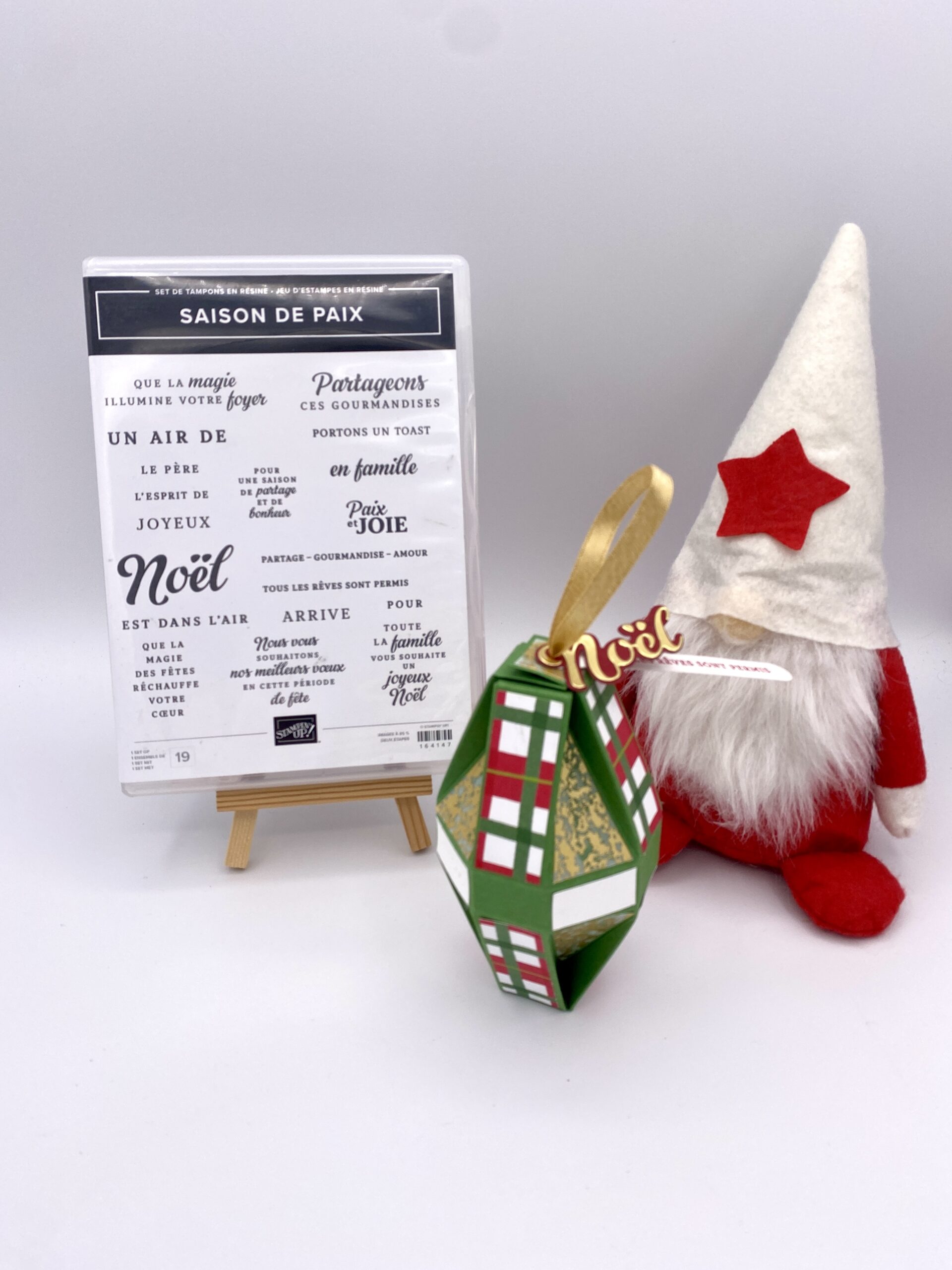 J’ai utilisé mes chutes de papiers design « Rennes à profusion » ainsi que les poinçons de découpes « Saison de paix » que j’aime trop (d’ailleurs si je fais un bilan, c’est les poinçons que j’ai le plus utilisé pour ce catalogue)
