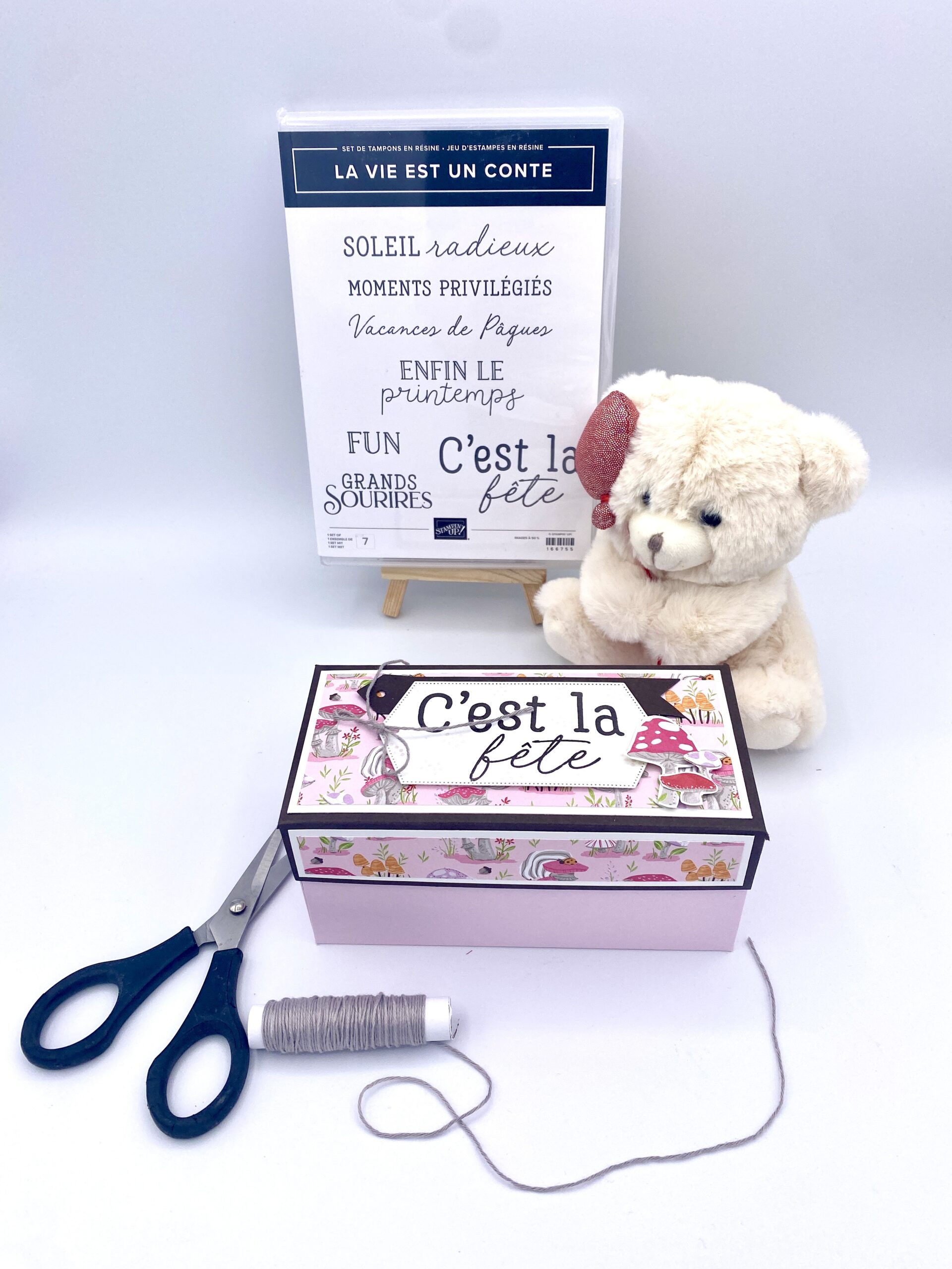 J’ai fini ma deco avec les champignons que j’ai découpé direct dans le papier design grâce à mes ciseaux de chez Stampin’Up! qui coupe jusqu’à la pointe, des ptits traits et hop roule ma poule…