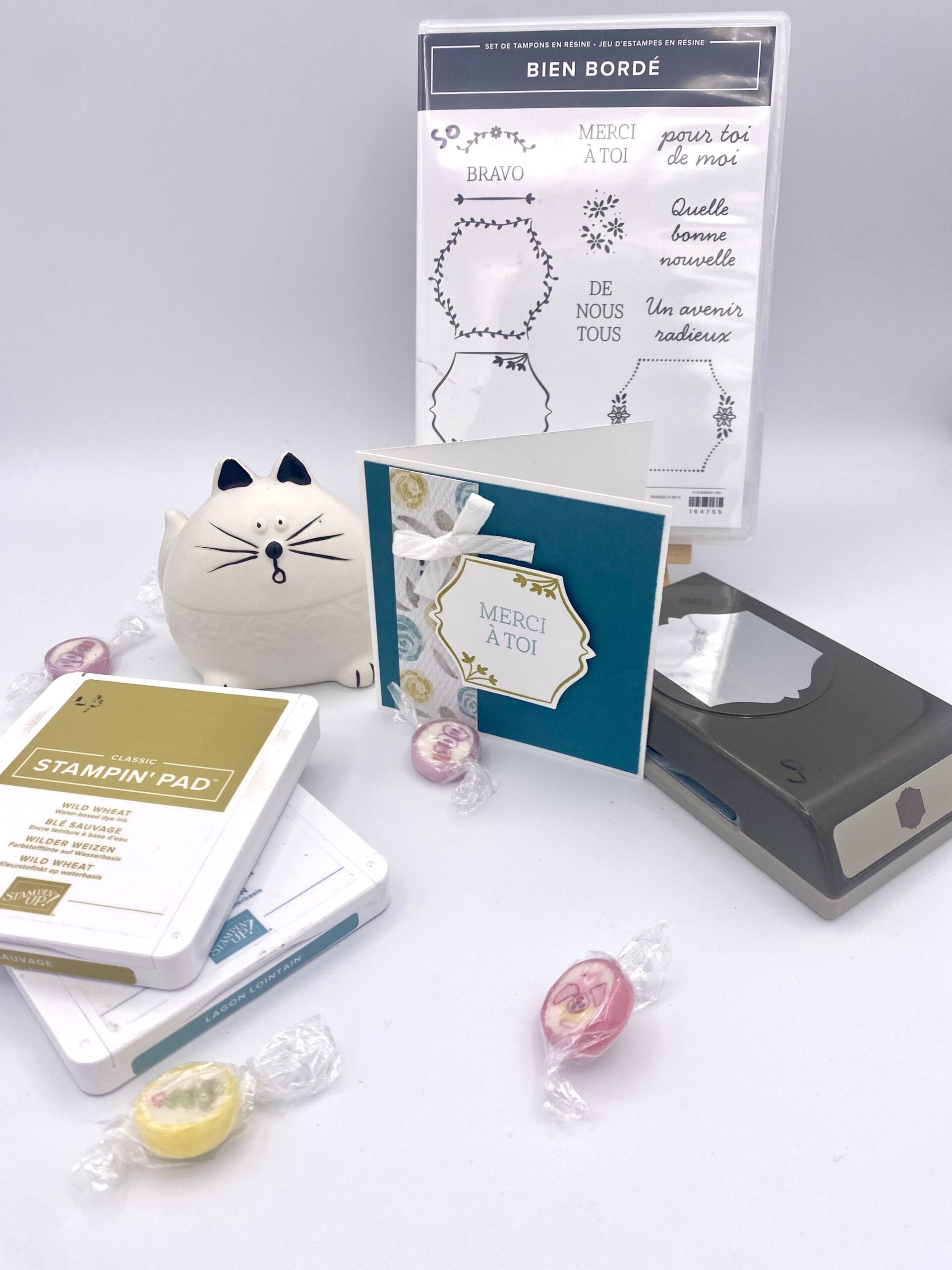 Avez vous remarqué? pas de machine de découpe mais juste set de tampons coordonné avec sa perforatrice