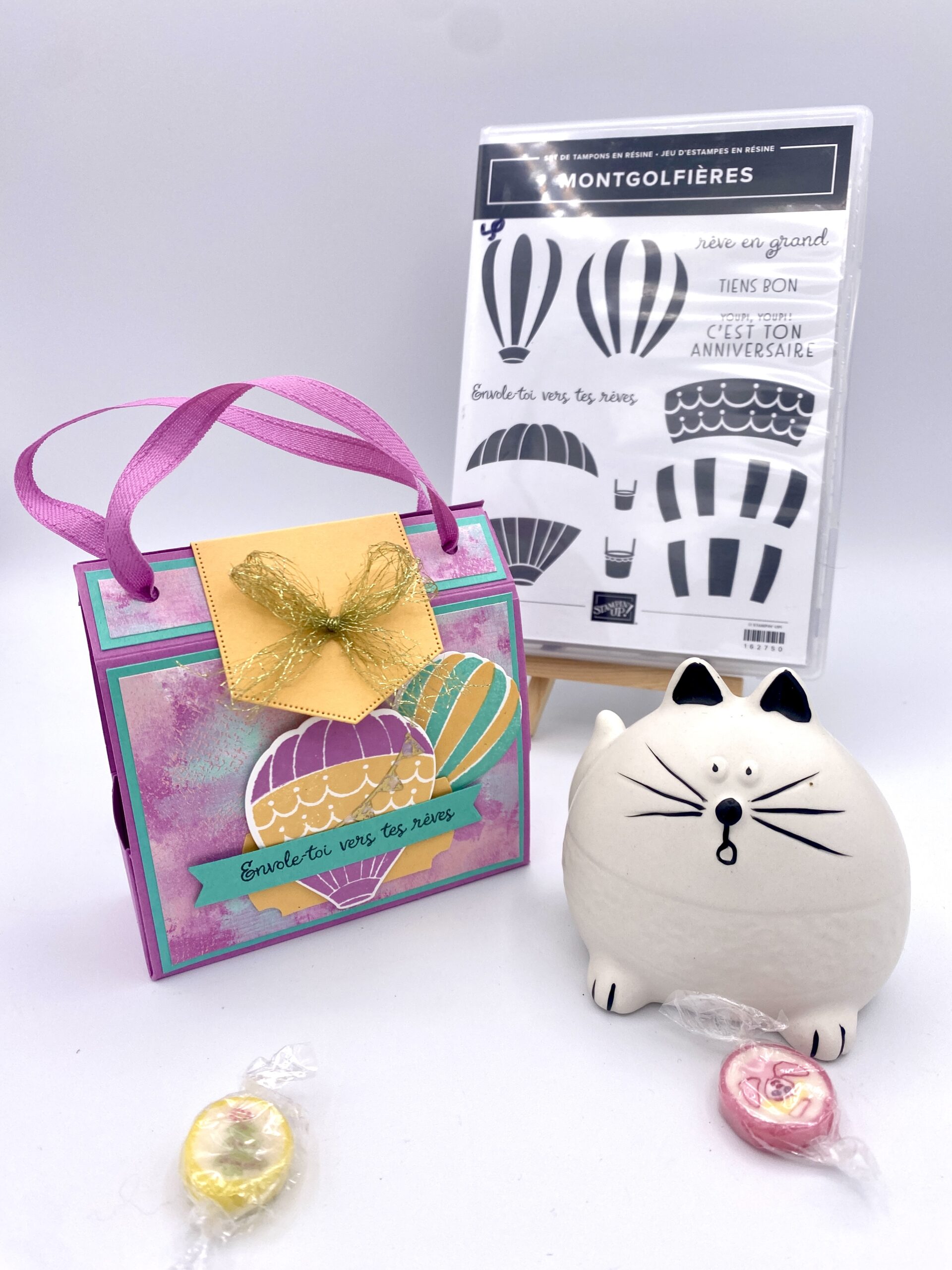 Vous remarquerez que j’ai joué avec le set de tampons des montgolfières, juste pour info il est en fin de série à tout petit prix et ça vous le coup