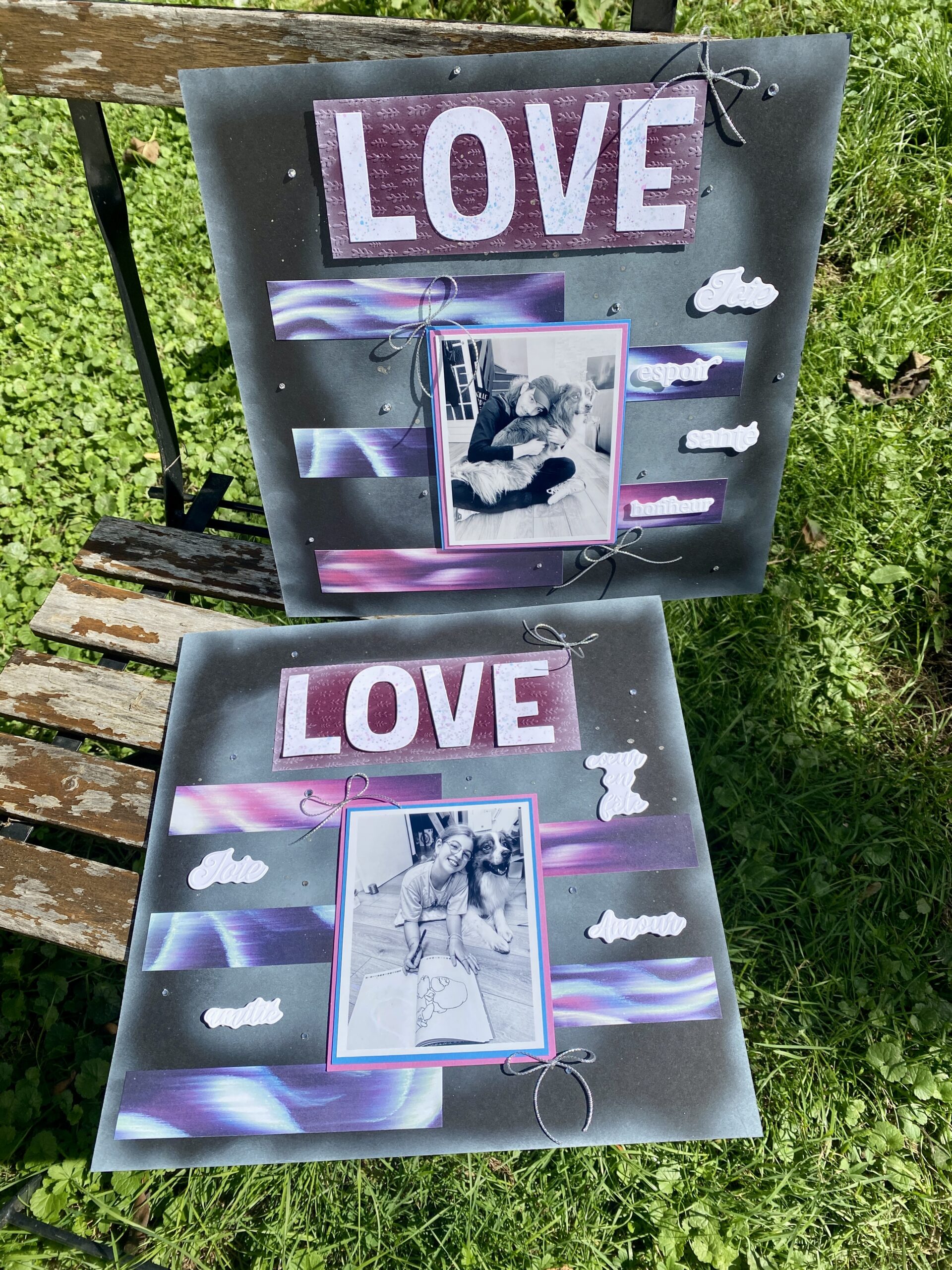 Pendant le live d’hier, j’ai fais fais enfin refais la page de scrap de mon fils mais avec une photo de ma fille
