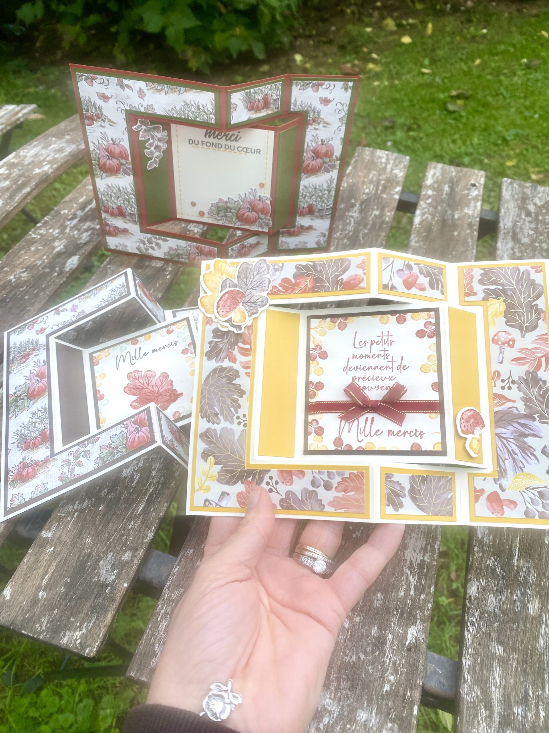 Moi j’adore l’automne et tout le changement de couleur que dame nature nous offre alors j’ai joué avec les 2 collections que Stampin’Up! nous offre