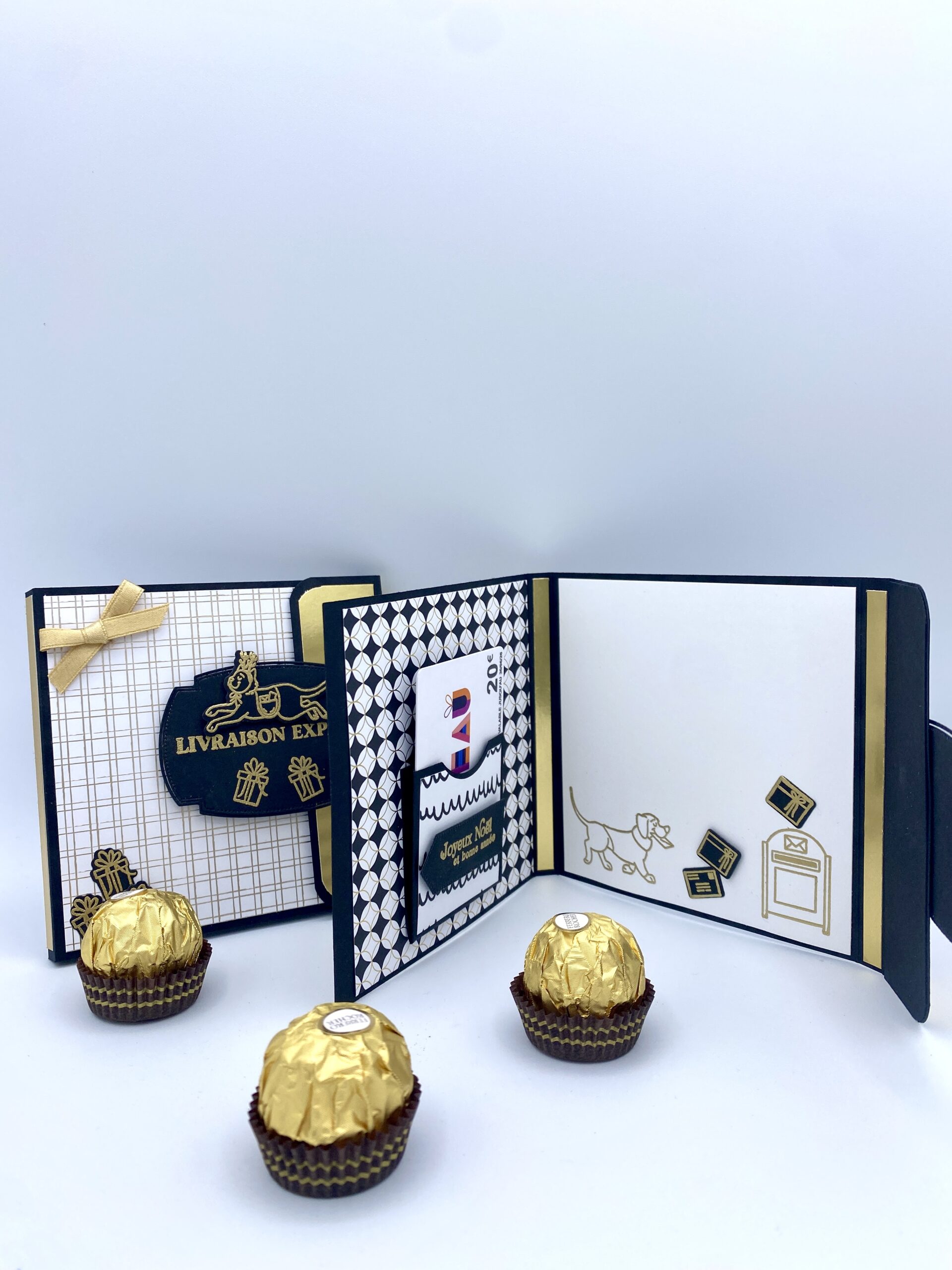 Lors de mon live créatif diffusé à 14h (comme tous les lundis)sur Facebook et YouTube, je vous ai proposé la réalisation d’une carte cadeau avec pochette à soufflet, dans un combo noir et or, parfait pour Noël, mais aussi pour toutes les occasions où l’on souhaite offrir autrement.